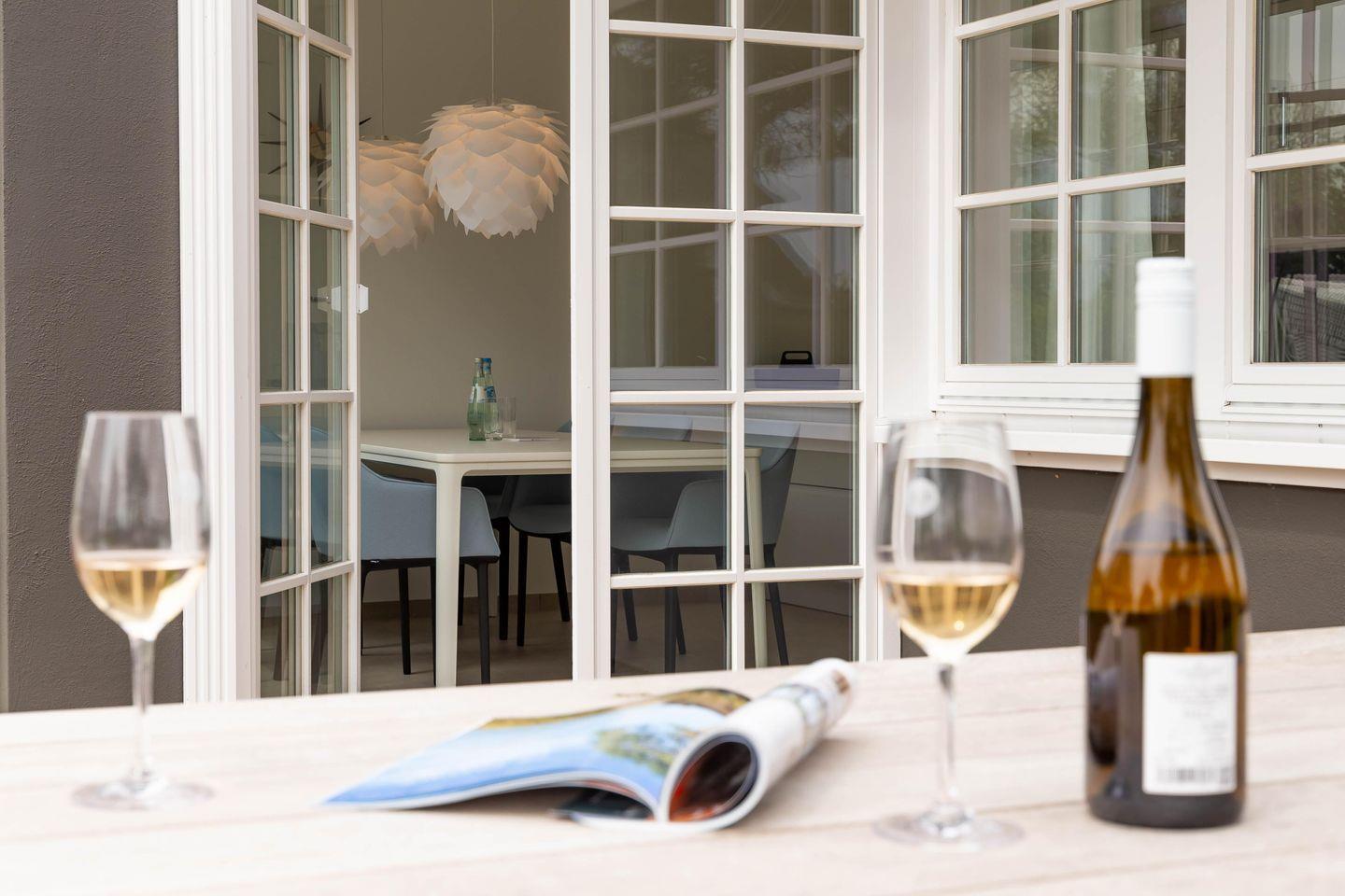 Die großzügige Terrasse lässt sich durch den Wohnbereich betreten. Dabei sorgt die aufwendig gestaltete Gartenarchitektur für ausreichend Privatsphäre, so dass du dich auch im Außenbereich vollends entspannen kannst. Dir stehen zudem zwei PKW-Stellplätze, eine E-Bike-Ladestation und ein gemeinschaftlich genutzter Grillplatz im hinteren Bereich des weitläufigen Gartens zur Verfügung.