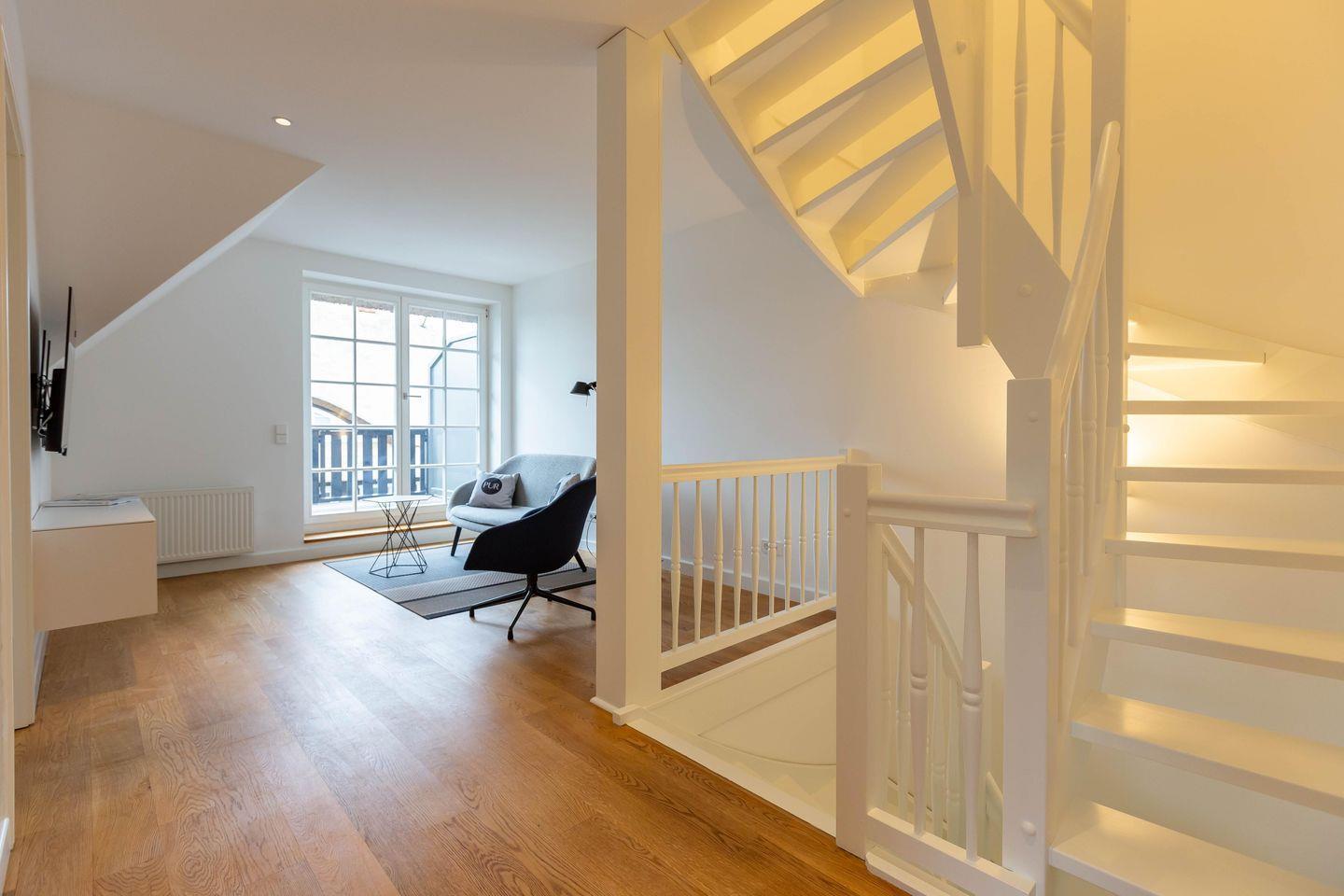 Schroffe Küstenabschnitte, weiße Traumstrände und urige Wälder machen Ahrenshoop zum Sehnsuchtsort und Rückzugsraum für anspruchsvolle Gäste. In Mitten dieses besonderen Kleinods befindet sich die Doppelhaushälfte PUR A4. Im Ortsteil Niehagen gelegen, begeistert das Ferienobjekt mit einer ruhigen Lage und der Nähe zum Saaler Bodden. Hier kannst du dich in jede Richtung treiben lassen, die Strände von Wustrow und Ahrenshoop erkunden und auf dem gut ausgebauten Wegenetz die Landschaft mit dem Rad oder Wanderschuhen erkunden. Restaurants, Cafés und die für den Ort berühmten Kunstgalerien befinden sich circa zwei Kilometer entfernt. Noch dichter ist der Althäger Hafen, der mit frischem Räucherfisch, Zeesboottouren und Sommerevents ein beliebter Anlaufpunkt für Urlauber und Einheimische ist.