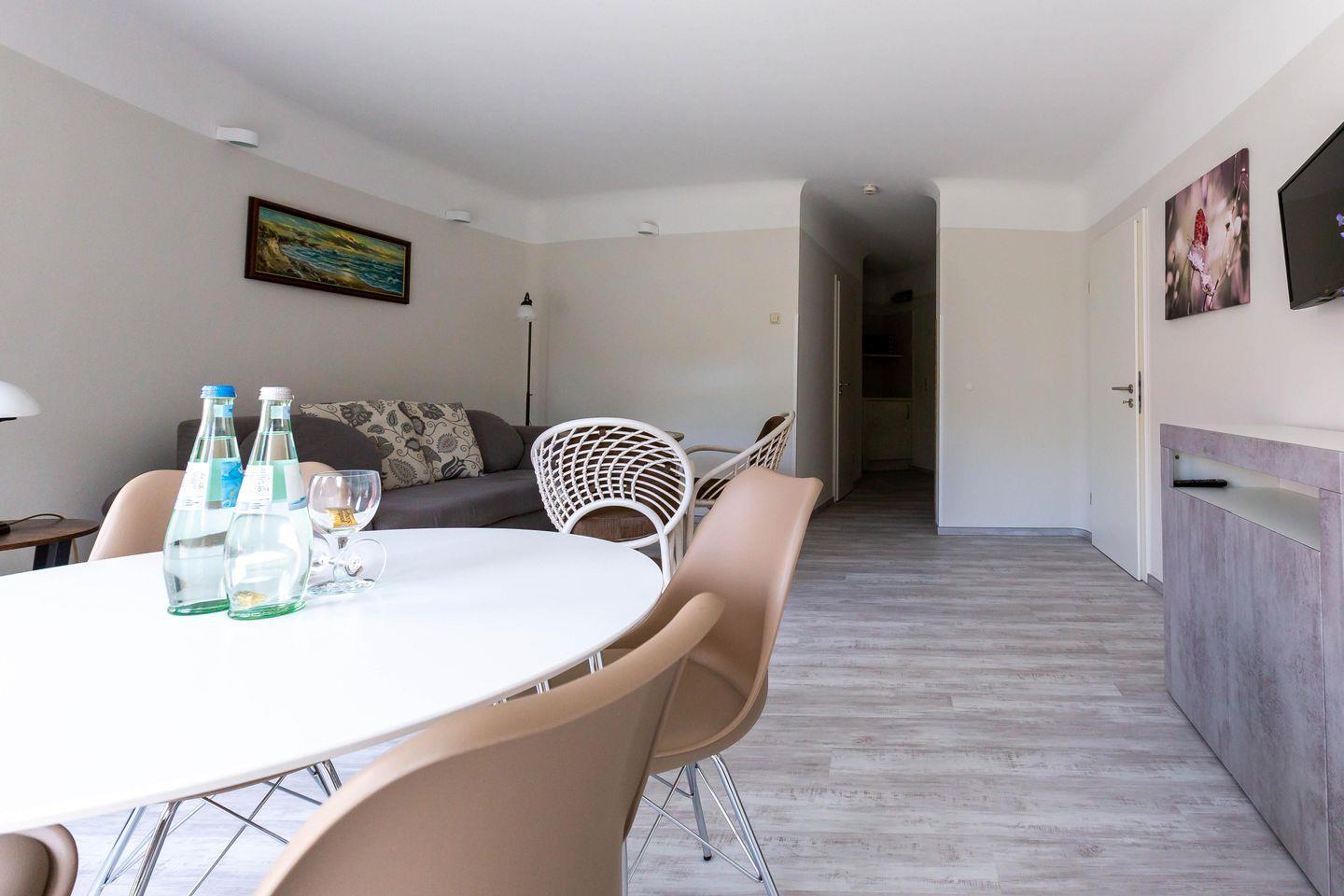 In den Häusern Muschel und Strandläufer gibt es noch 7 weitere Ferienwohnungen, die gern für Familien und Gruppen zusammen gebucht werden können. Des Weiteren befindet sich im Haupthaus ein Restaurant.
