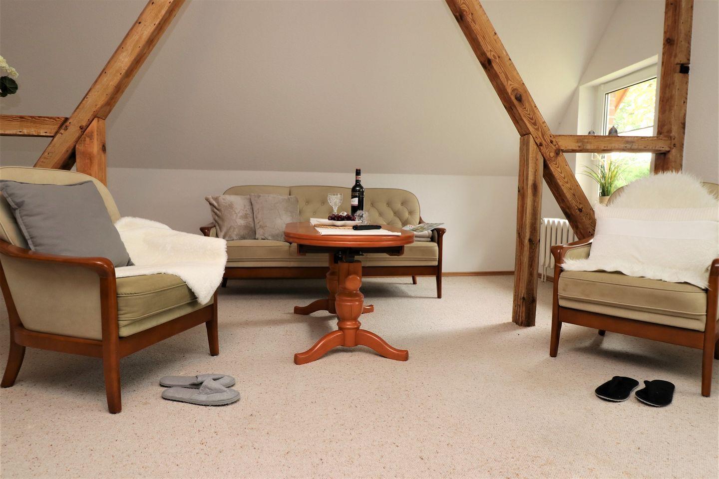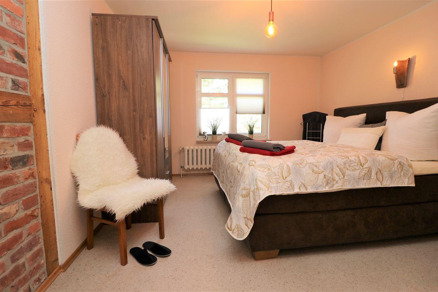 Ein charmantes Appartement im Obergeschoss mit Balkon und herrlichem Boddenblick, ideal für bis zu 4 Personen. Entspannen Sie sich im geräumigen Wohnzimmer und nutzen Sie die voll ausgestattete Küche für köstliche Mahlzeiten. Das Appartement verfügt über zwei Schlafzimmer: eins mit einem gemütlichen Doppelbett und das andere mit einem Einzelbett und einer Schlafcouch für zusätzlichen Komfort. Das moderne Bad bietet eine Badewanne, eine Dusche und WC. WLAN ist verfügbar, damit Sie in Verbindung bleiben können. Bitte beachten Sie, dass Haustiere und Rauchen in der Wohnung nicht gestattet sind. Zwei PKW-Stellplätze stehen für Ihre Fahrzeuge auf dem Grundstück zur Verfügung.