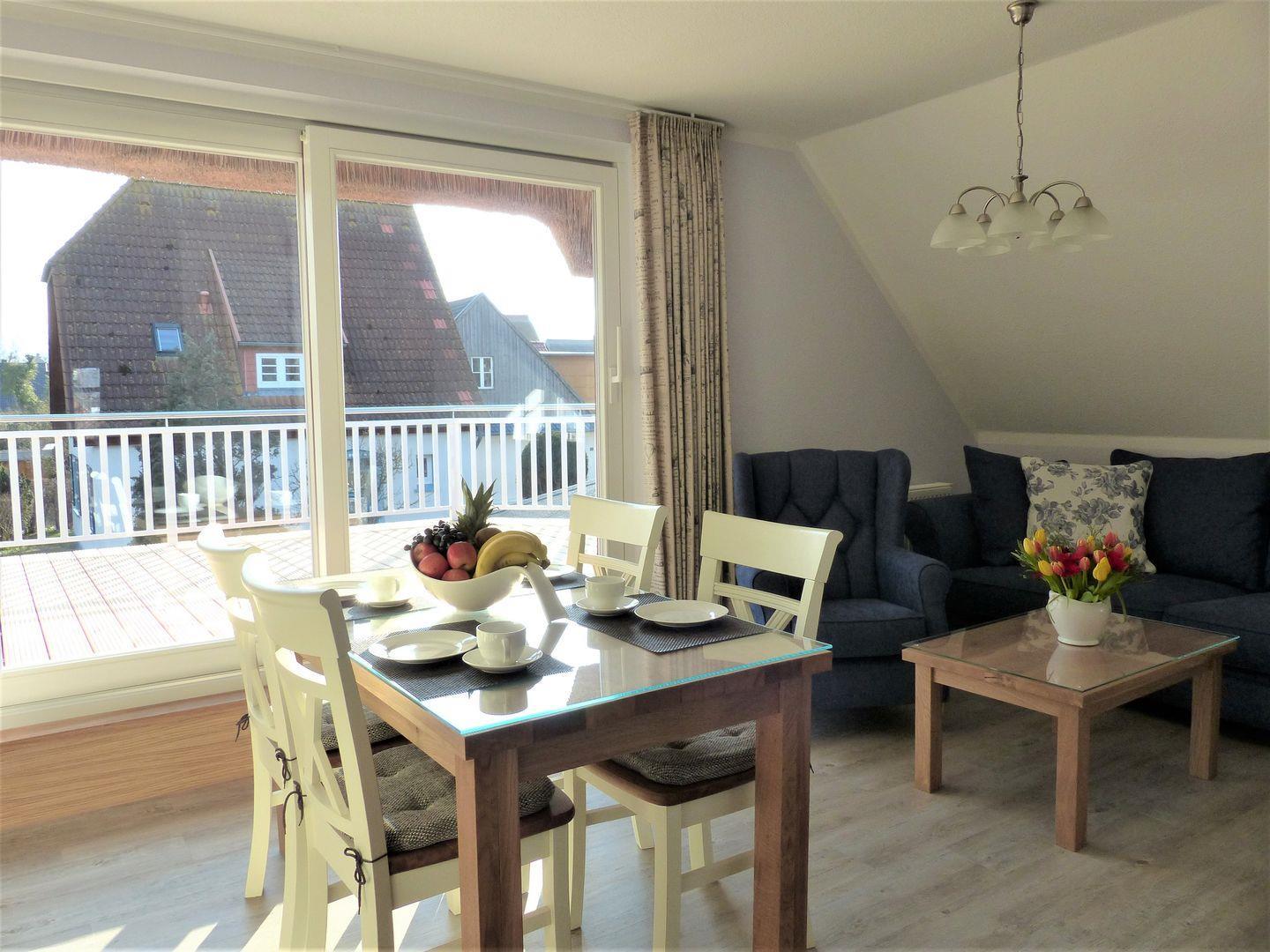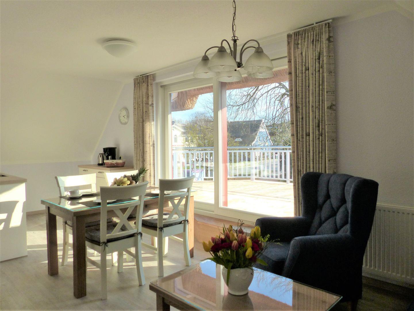 Ein gemütliches Appartement im Dachgeschoss, perfekt für maximal 4 Personen und einer großen Dachterrasse nach Süden ausgerichtet. Das Wohnzimmer ist mit einer praktischen Küchenzeile ausgestattet, damit Sie sich selbst versorgen können. Die Wohnung verfügt über 2 Schlafzimmer mit jeweils einem komfortables Doppelbett für erholsamen Schlaf. Im Bad finden Sie eine Dusche und WC. Haustiere und das Rauchen sind in der Wohnung nicht gestattet, jedoch gibt es WLAN für einen bequemen Internetzugang während des Aufenthalts. Der PKW-Stellplatz sowie ein abschließbarer Fahrradschuppen stehen Ihnen direkt am Grundstück zur Verfügung.