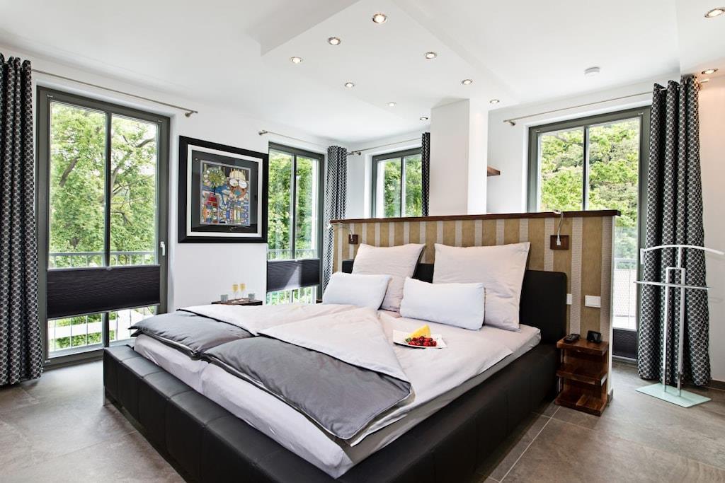 Denne penthouselejlighed trodser al beskrivelse; den skal opleves i virkeligheden! Tag elevatoren direkte til din lejlighed. Her finder du, hvad der måske er den mest eksklusive penthouselejlighed i Binz. Højdepunktet er den 40 m² store tagterrasse med havudsigt. Ud over den rummelige, åbne opholdsstue er der to soveværelser og to badeværelser med bruseniche med regnbruser. Ren wellness venter: en Klafs-sauna med aromaterapi, tropiske bade og dampbade samt et spabad med udsigt over Binz-himlen gennem en glasåbning i loftet. Vores penthouselejlighed er møbleret med udsøgte designermøbler (Rolf Benz, Walter Knoll, Team7, Kendo & Joop). Et andet højdepunkt er designerkøkkenet Marecucina, formet som en båd. En brændeovn garanterer hyggelige aftener om efteråret og vinteren. En privat vaskemaskine og tørretumbler er placeret i kælderen, eksklusivt til denne lejlighed. En opvarmet pool på 75 m² er også tilgængelig i haven.