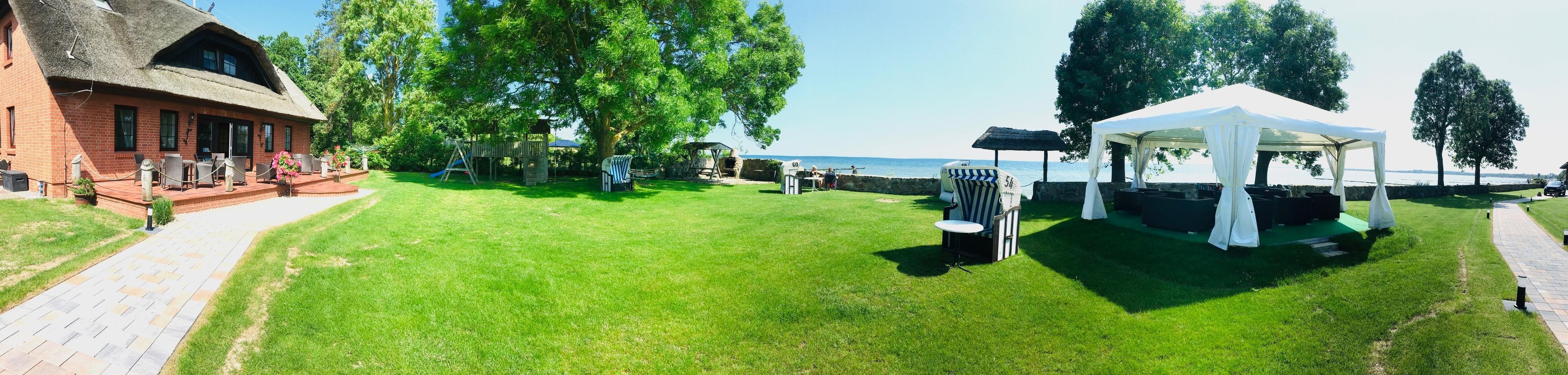 Selbstverständlich kann die große Wiese auch zum Ballspielen oder Sonnenbaden genutzt werden. Ein Kinderspielplatz sorgt für den passenden Zeitvertreib der kleinen Gäste.