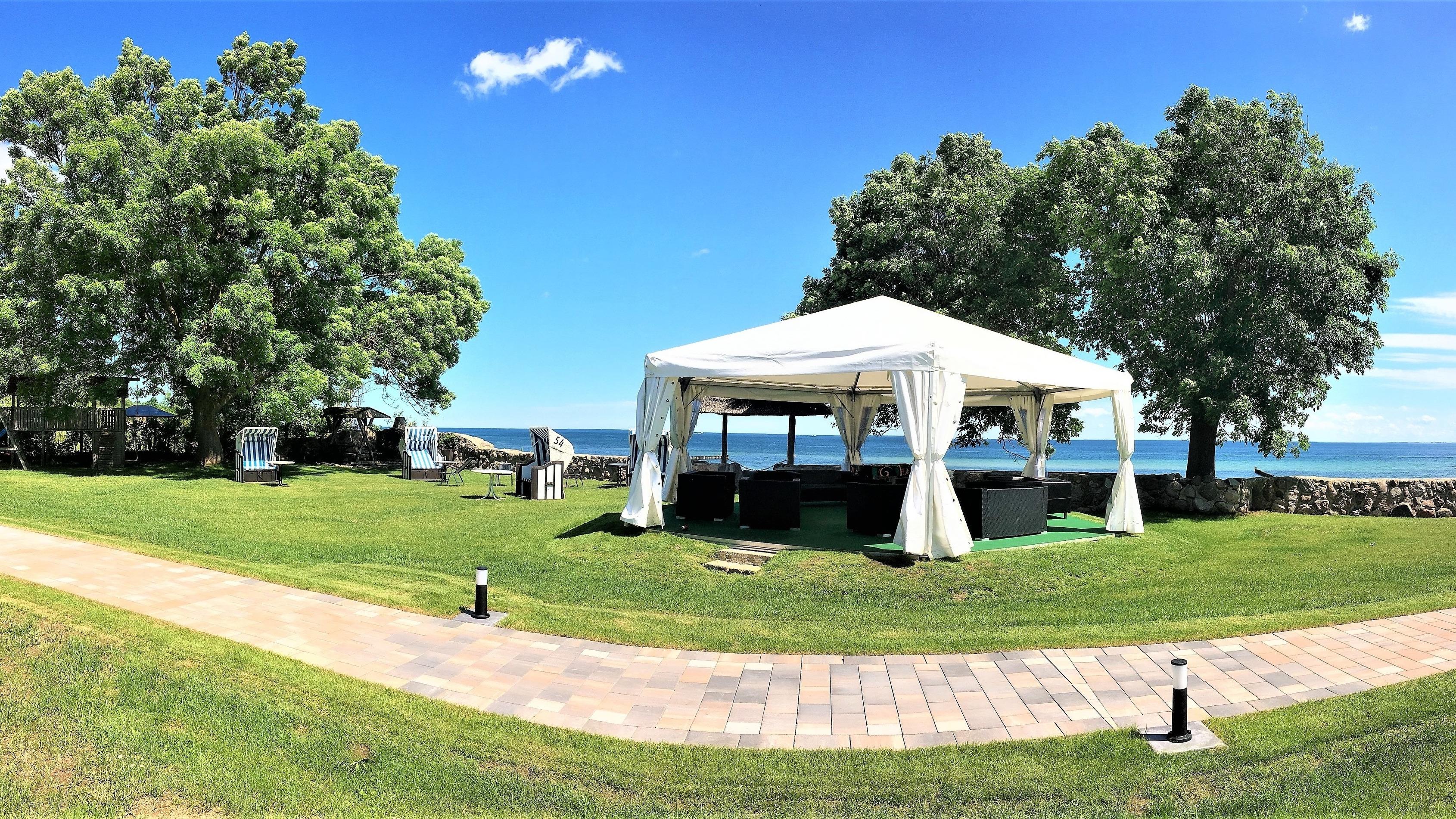 Besonders erholungssuchende Paare und Familien werden die Großzügigkeit unseres Grundstückes zu schätzen wissen. Auf unseren 2000qm großem Gartengrundstück finden Sie alles um einen ungestörten Strandtag zu verbringen. Die Lounge Terasse lädt schon am morgen zu einem aussergewöhnlichen Frühstück mit 180 Grad Meerblick ein. Jede Wohnung hat im Gartenbereich ihren eigenen Strandkorb und im Loungebereich mit Gartenkamin findet man auch jederzeit ein beschauliches Plätzchen. Eine Natursteinmauer mit eingebautem Gartenkamin begrenzt das Grundstück hin zum Strand und sorgt so für eine angenehme ungestörte Ruhe.