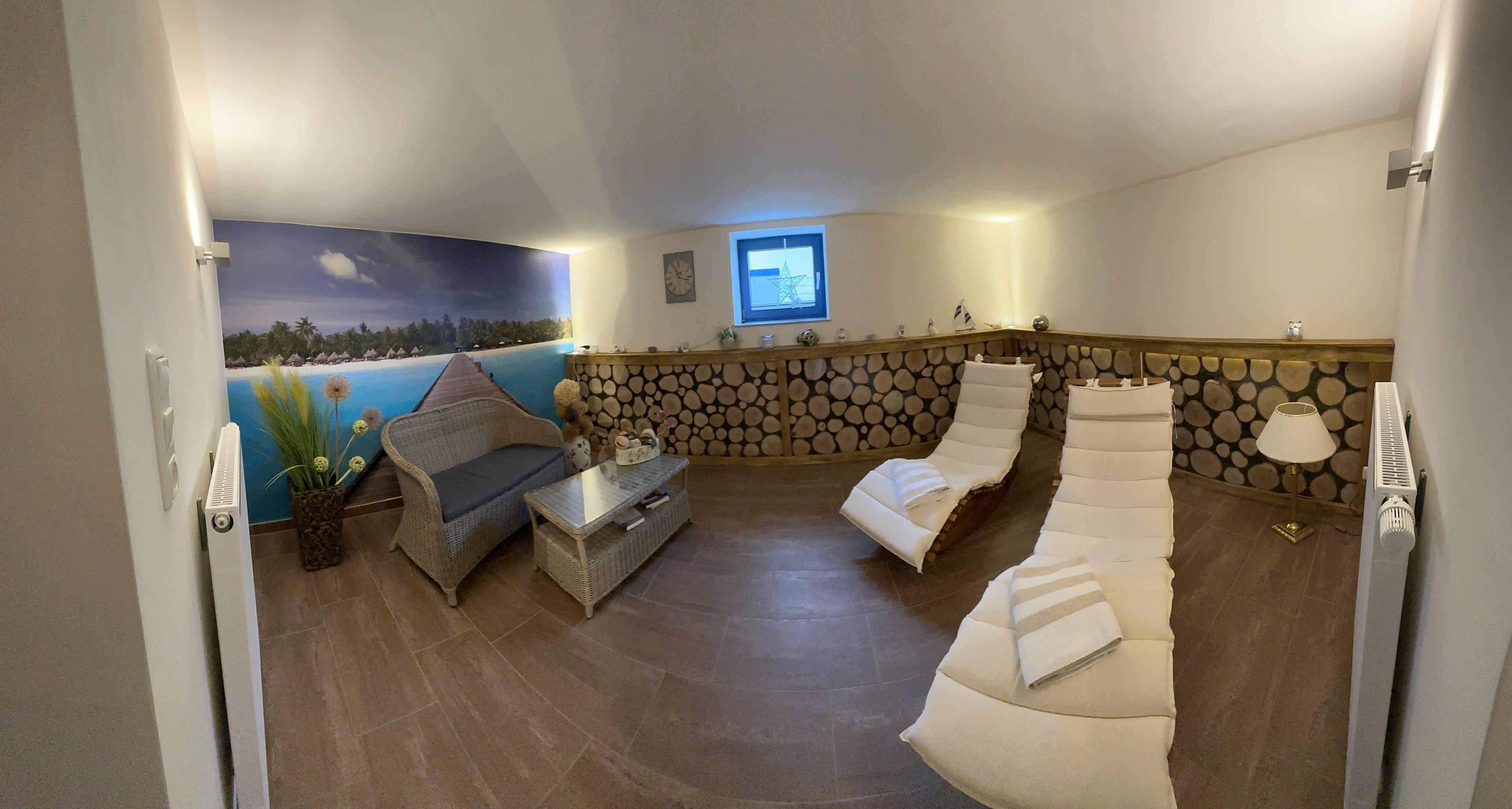 Im Untergeschoss finden Sie unseren Wellnessbereich mit einer finnischen Sauna, einer modernen Infrarotkabine und einem einladenden Ruhebereich.