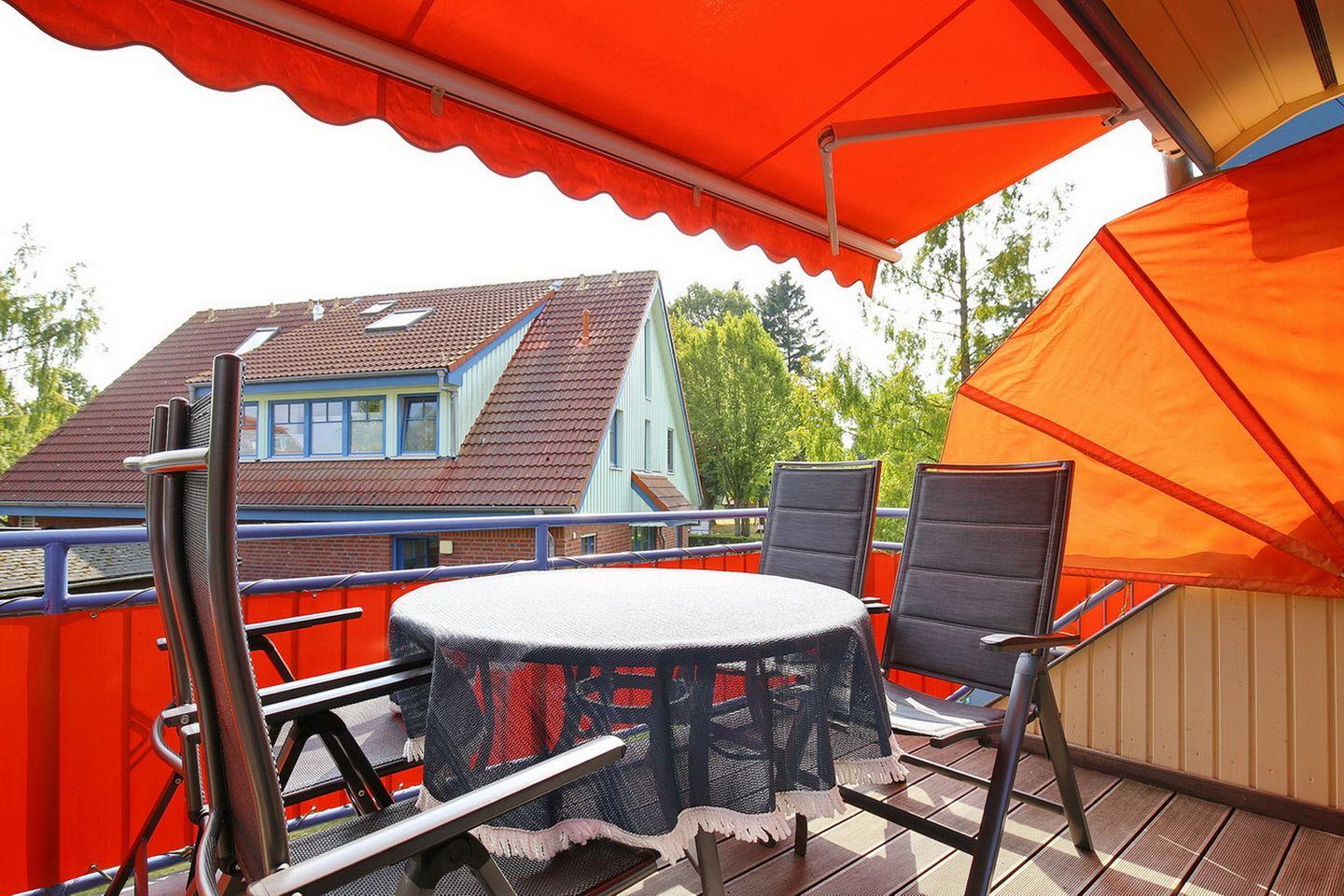 Auf ca. 68 m² bewohnst du im 1. OG des Hauses 14 die Ferienwohnung. Zu der über zwei Etagen verlaufenden 4- Zi.-Wohnung gehört ein Balkon, der nach Süd-Ost ausgerichtet ist. Du bewohnst drei Schlafzimmer, einen Wohn- und Essbereich, ein Duschbad und eine Küchenzeile. Die Entfernung zum Strand beträgt ca. 250 m.