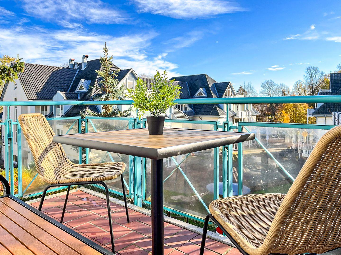 Die Ferienwohnung 19 in der Anlage Haus am Teich ist eine schöne 3-Zimmer-Wohnung für bis zu 4 Personen. Die Ferienwohnung liegt im 2. OG, verfügt über zwei Etagen und hat einen Balkon in Süd-Ost-Lage.
