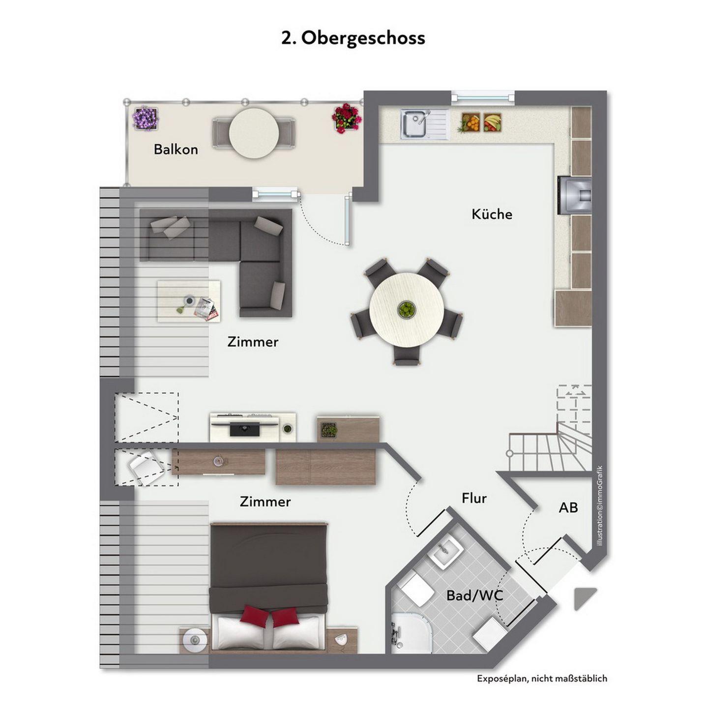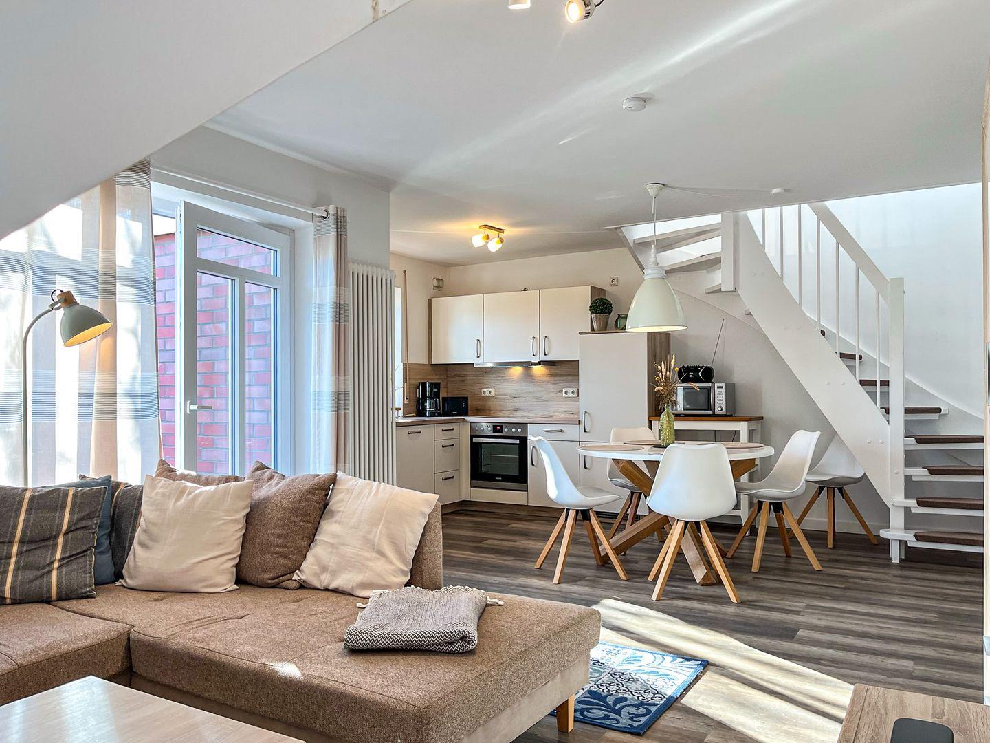 Deine Ferienwohnung Nr. 19 im Haus am Teich ist eine 3-Zimmerwohnung für bis zu 4 Personen, die über zwei Etagen verläuft.