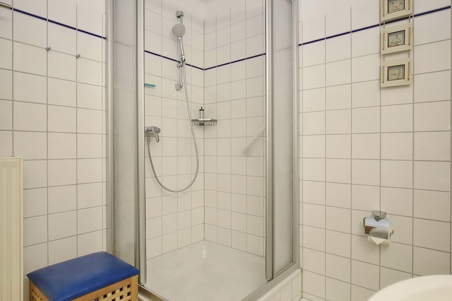 Ein gefliestes Duschbad ist vorhanden. Ein Bügelbrett, Bügeleisen und eine Mikrowelle finden sich im Abstellraum. Fahrräder können am Fahrradständer am Haus oder im Keller abgestellt werden. In dieser Nichtraucherwohnung sind maximal zwei Haustiere erlaubt.