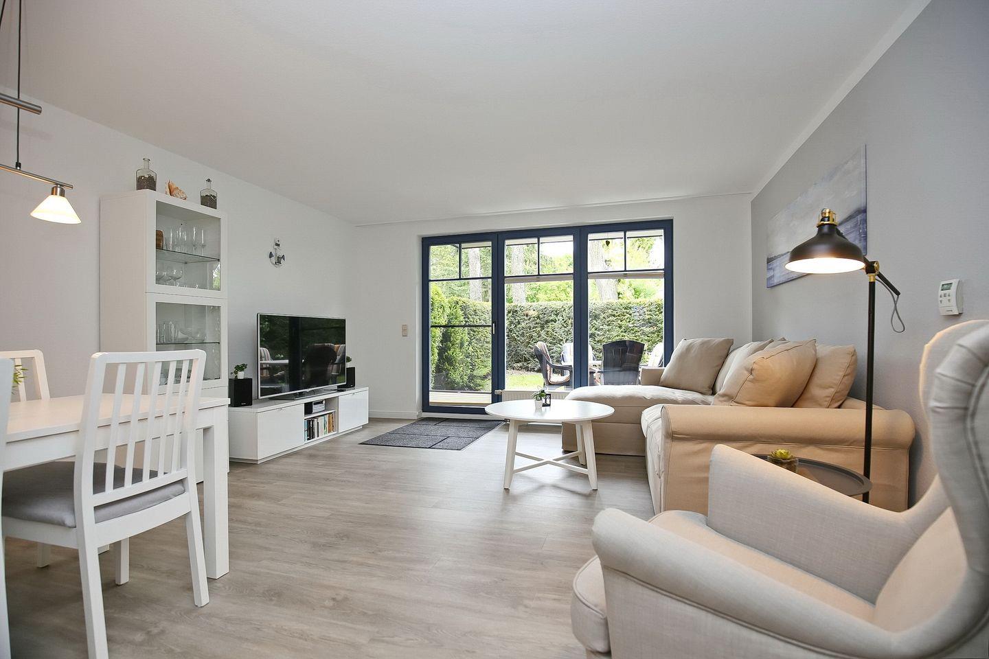 Die freundliche 2-Zimmer-Wohnung bietet mit 55 m², für maximal vier Personen, ausreichend Platz für einen erholsamen Urlaub. Deine gemütliche Erdgeschosswohnung mit Terrasse in Süd-Ost Lage ist mit einem Schlafzimmer, einem Wohn-und Essbereich, einer Küchenzeile und einem Duschbad gestaltet. Die Entfernung zum Strand beträgt von der Ferienanlage Papillon ca. 250 m.