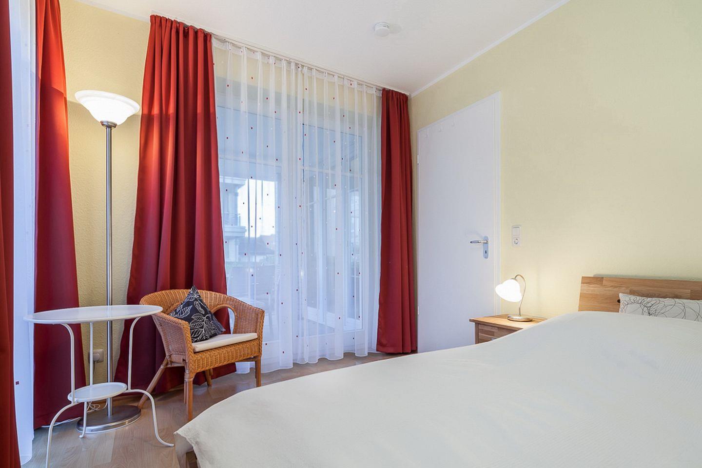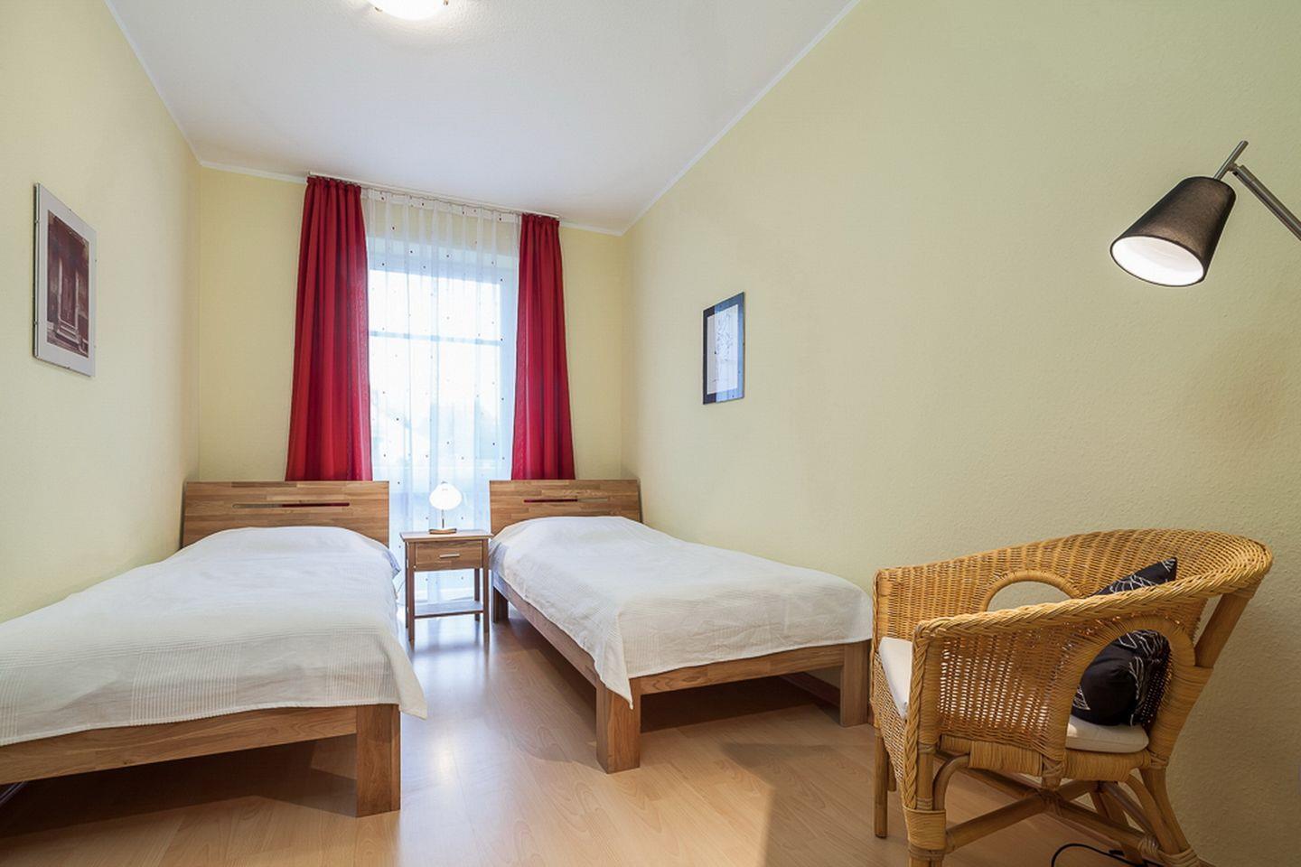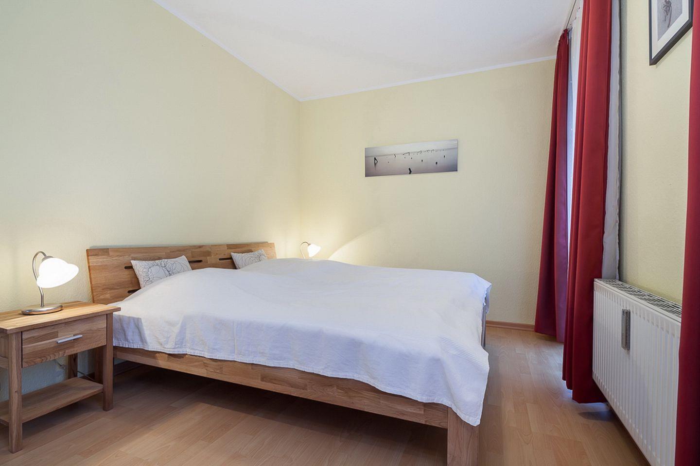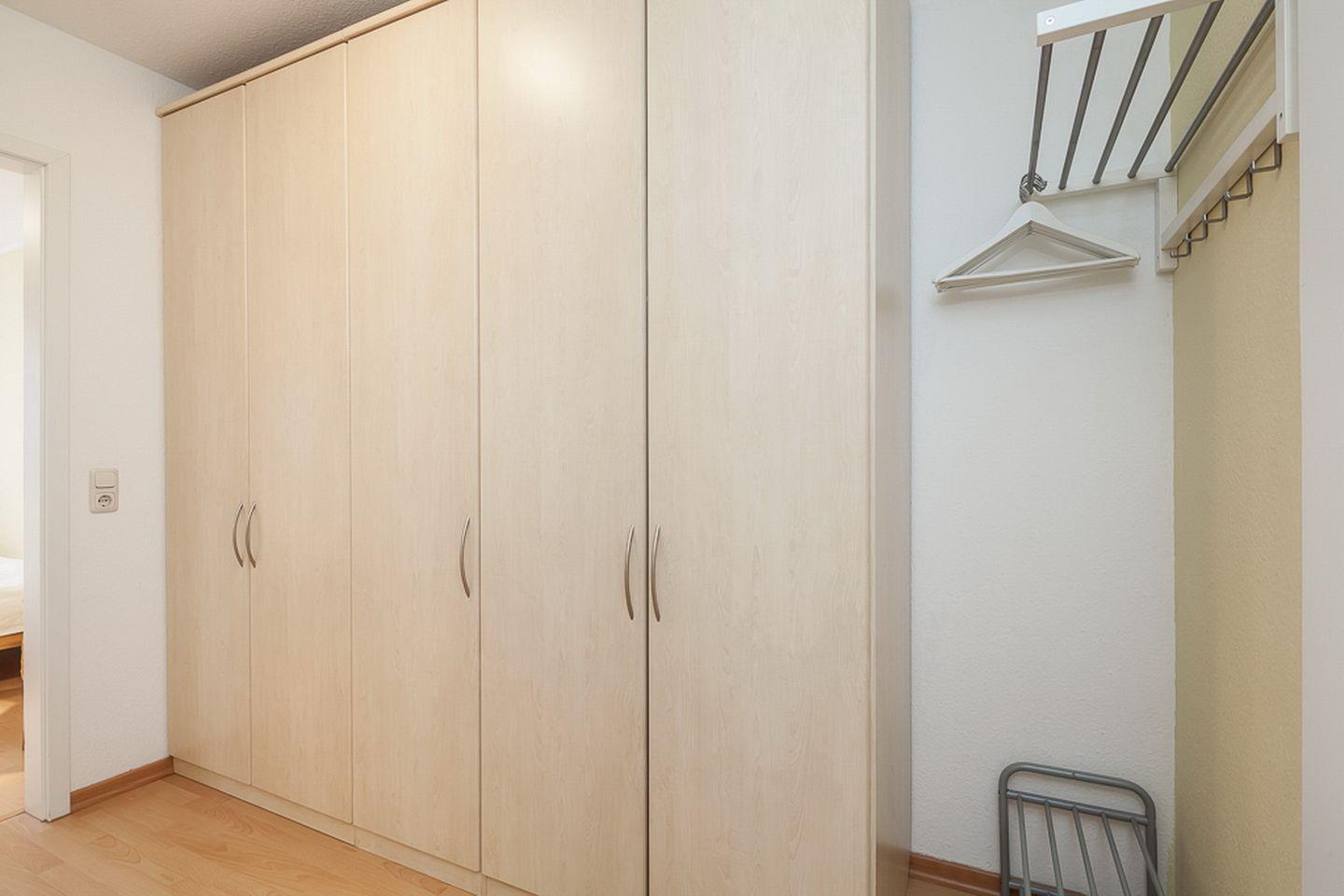 Weiteren Komfort finden Sie in den Schlafzimmern mit Doppelbett (2 x 90 x 200 cm) und zwei Einzelbetten (90 x 200 cm) vor. Beide Schlafräume haben eine Leseecke mit Sessel und Lampe. Als Verdunklung wurden Vorhänge an den Fenstern angebracht. Im Flur gibt es einen großen Kleiderschrank für Ihr Urlaubsgepäck.