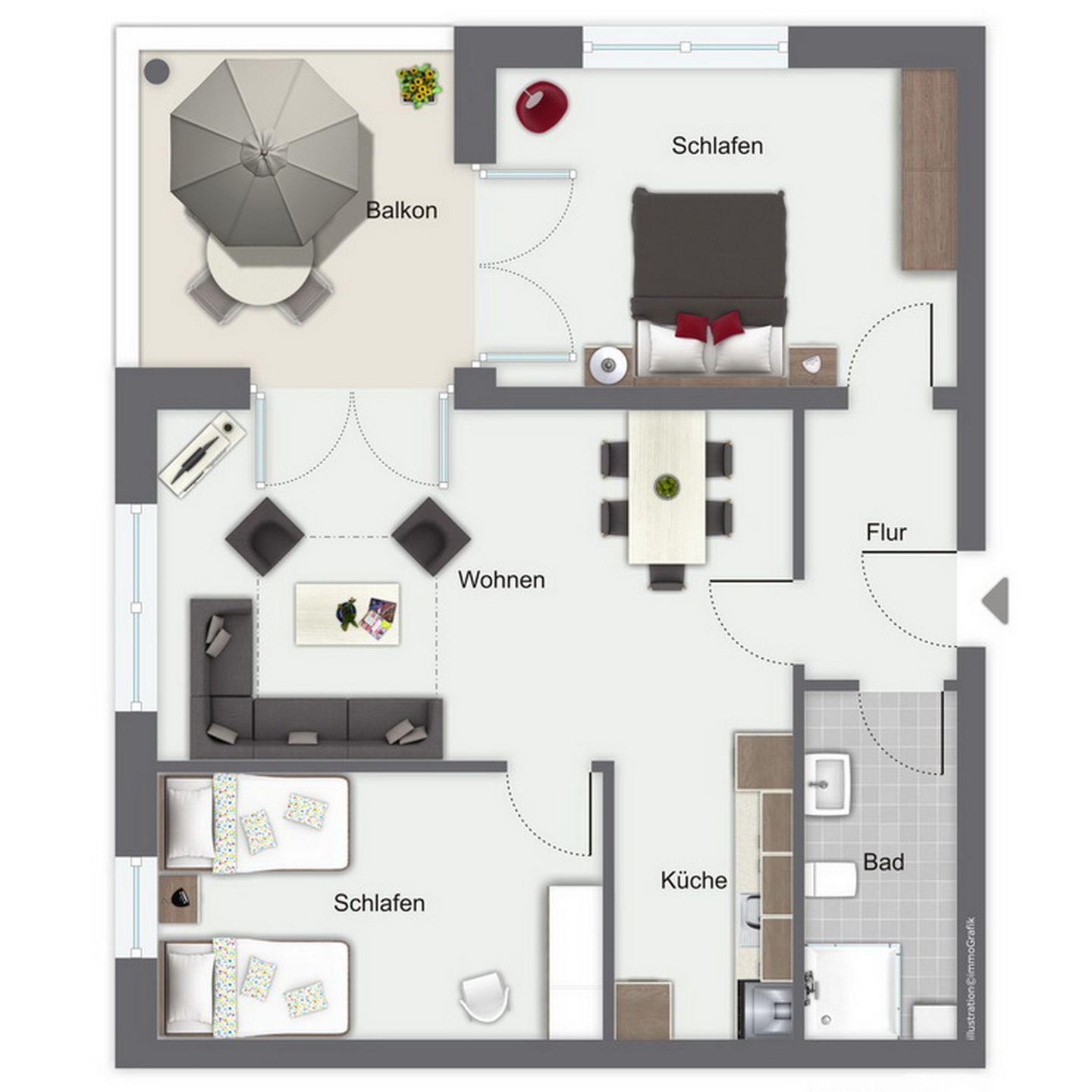 Die Ferienwohnung Nr. 43 in der Ferienanlage Dünenblick ist eine 3-Zimmer-Wohnung für bis zu 5 Personen.