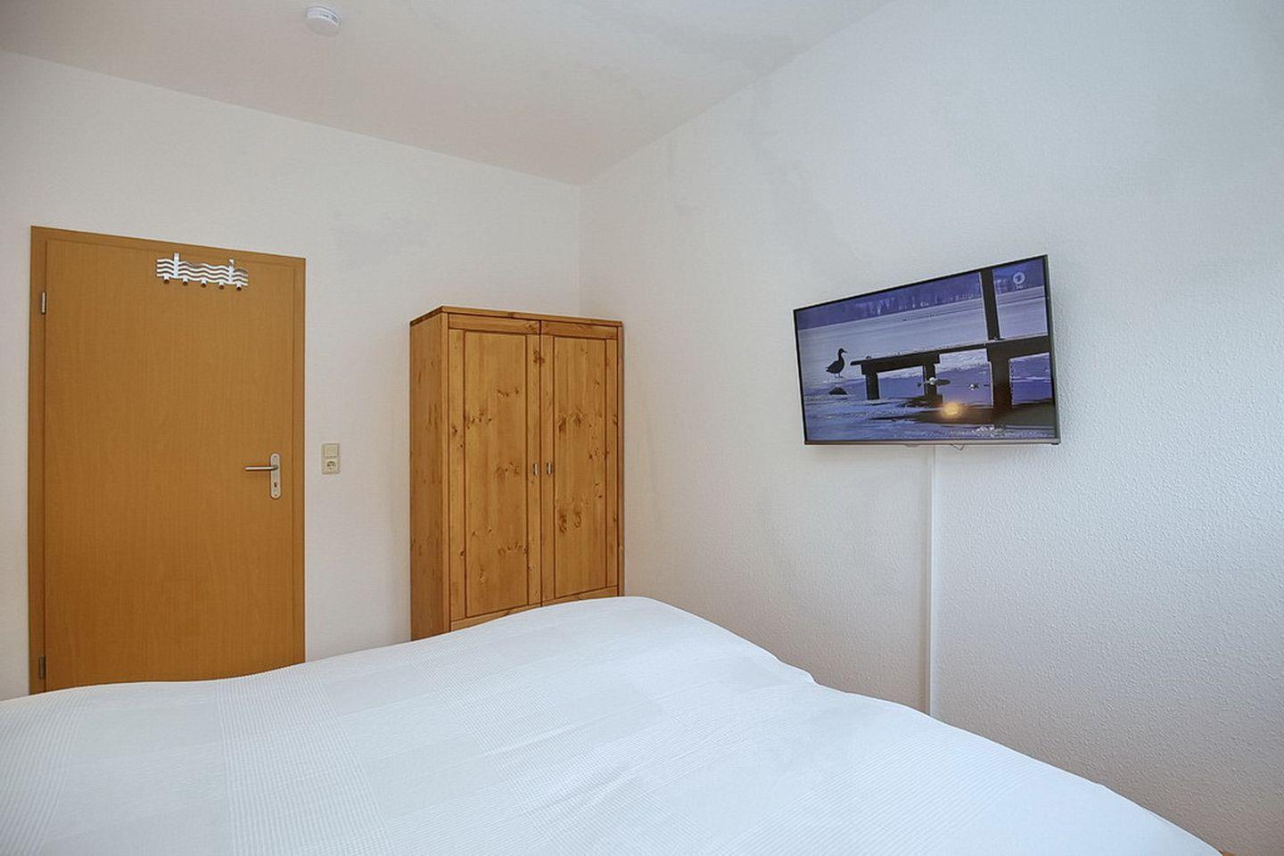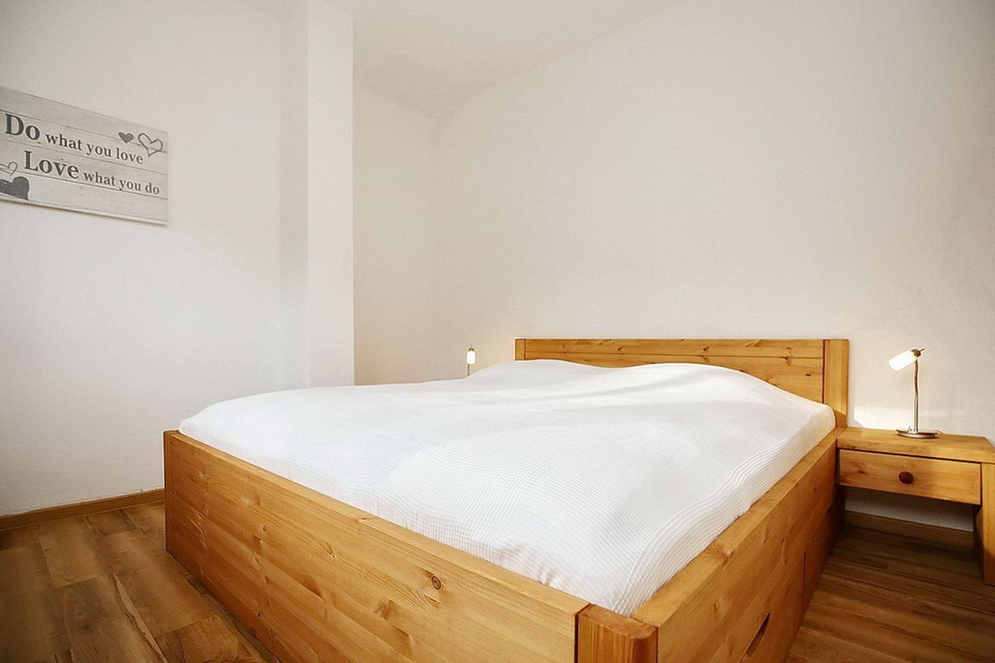 In beiden Schlafräumen sind je 1 Doppelbett (2 x 90 cm x 200 cm) vorhanden. Für die Urlaubsgarderobe kannst du in jedem Schlafzimmer einen 3-türigen Kleiderschrank nutzen. Vom nach Süden gelegenen Schlafzimmer erreichst du den 2. Balkon. Plissees sowie Vorhänge an den Fenstern dienen zur Verdunkelung. Die Böden in der gesamten Wohnung sind mit Designbelag ausgelegt.