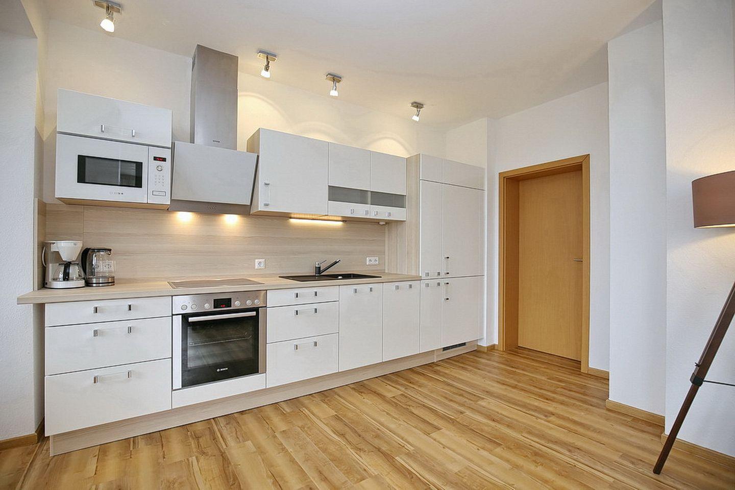 Die komplett ausgestattete Küche mit Cerankochfeld und Backofen, Dunstabzugshaube, Geschirrspüler, Mikrowelle in Sichthöhe, Kühlschrank mit Gefrierkombination und vielem mehr ist in den Wohnbereich integriert und lädt zum Kochen ein.