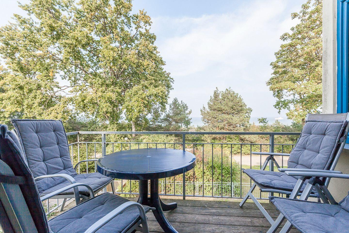 Die 3-Zimmer-Ferienwohnung mit Seeblick im 1. OG bietet dir auf 72 m² ein Wohnzimmer mit Küchenzeile, 2 möblierte Balkone (Seeseite, Südseite), 2 Schlafzimmer und 1 Badezimmer. Die Strandentfernung beträgt 30 m.