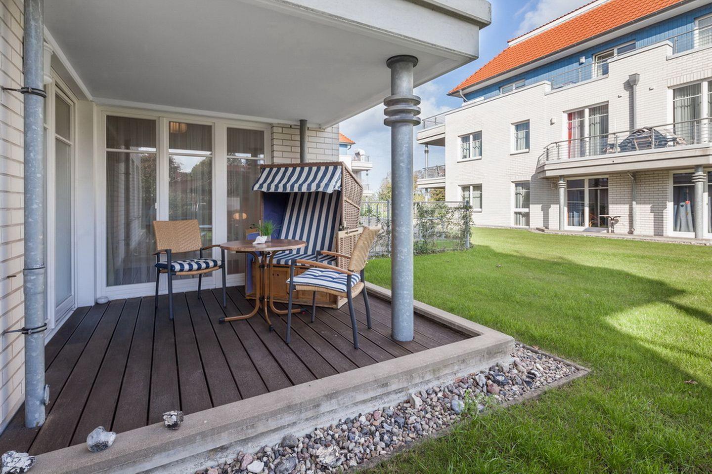 Die Ferienwohnung 22 in der Anlage Dünenblick in Boltenhagen ist eine 2-Zimmer-Wohnung für bis zu 2 Personen. Die 2-Zimmer-Ferienwohnung mit kostenfreiem WLAN (ohne Gewähr) liegt im Erdgeschoss und hat eine Terrasse mit Strandkorb und eingeschränktem Seeblick in Nord-Ost Lage.