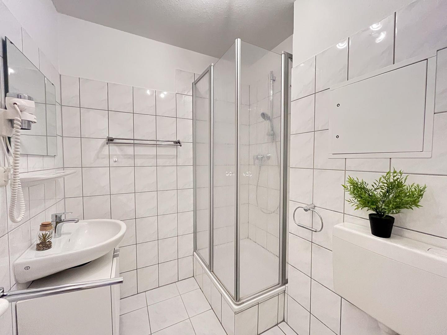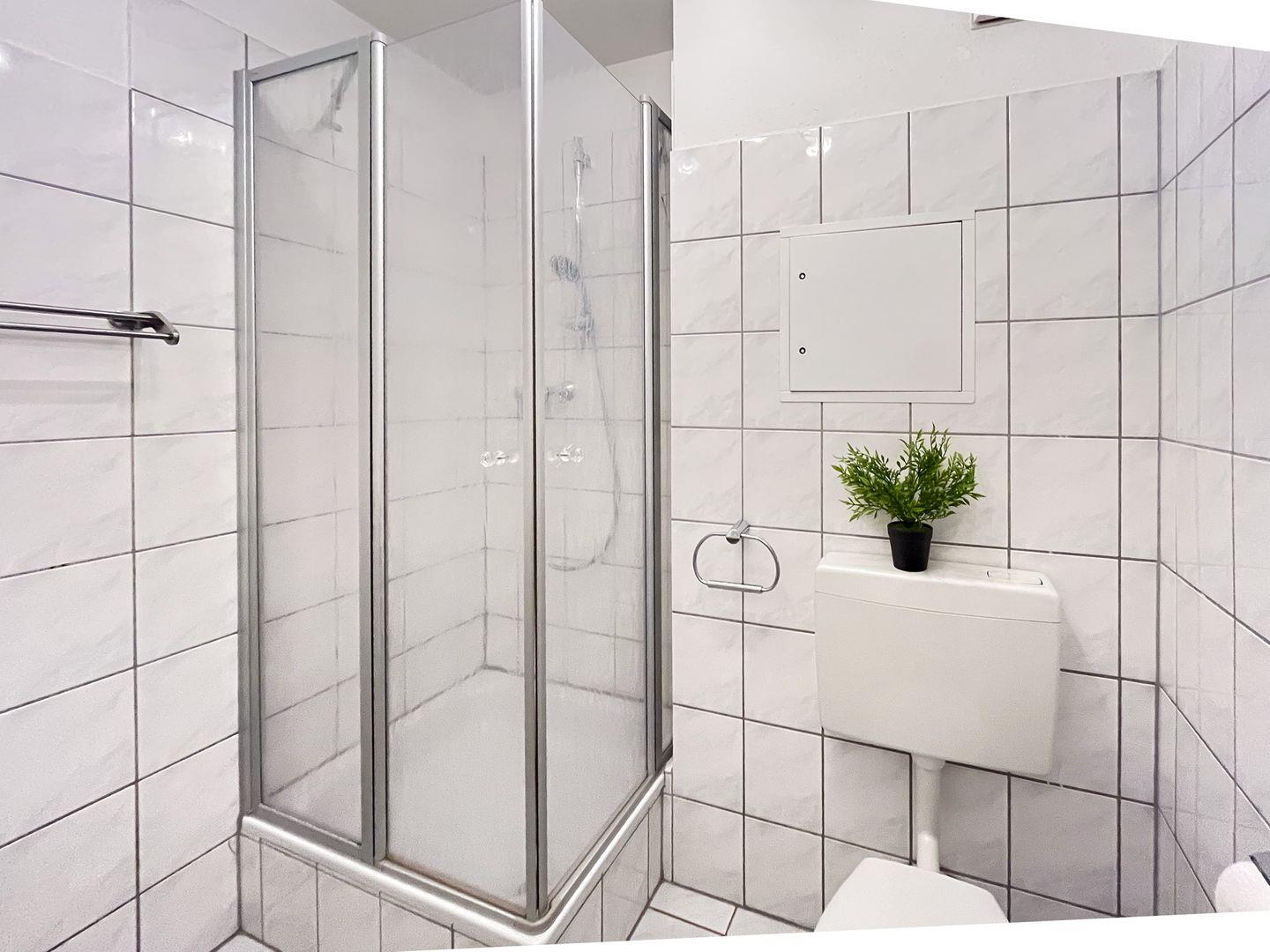 Das geflieste Duschbad ist mit Dusche und einem WC ausgestattet. Haustiere sind in dieser Nichtraucherwohnung nicht erwünscht.