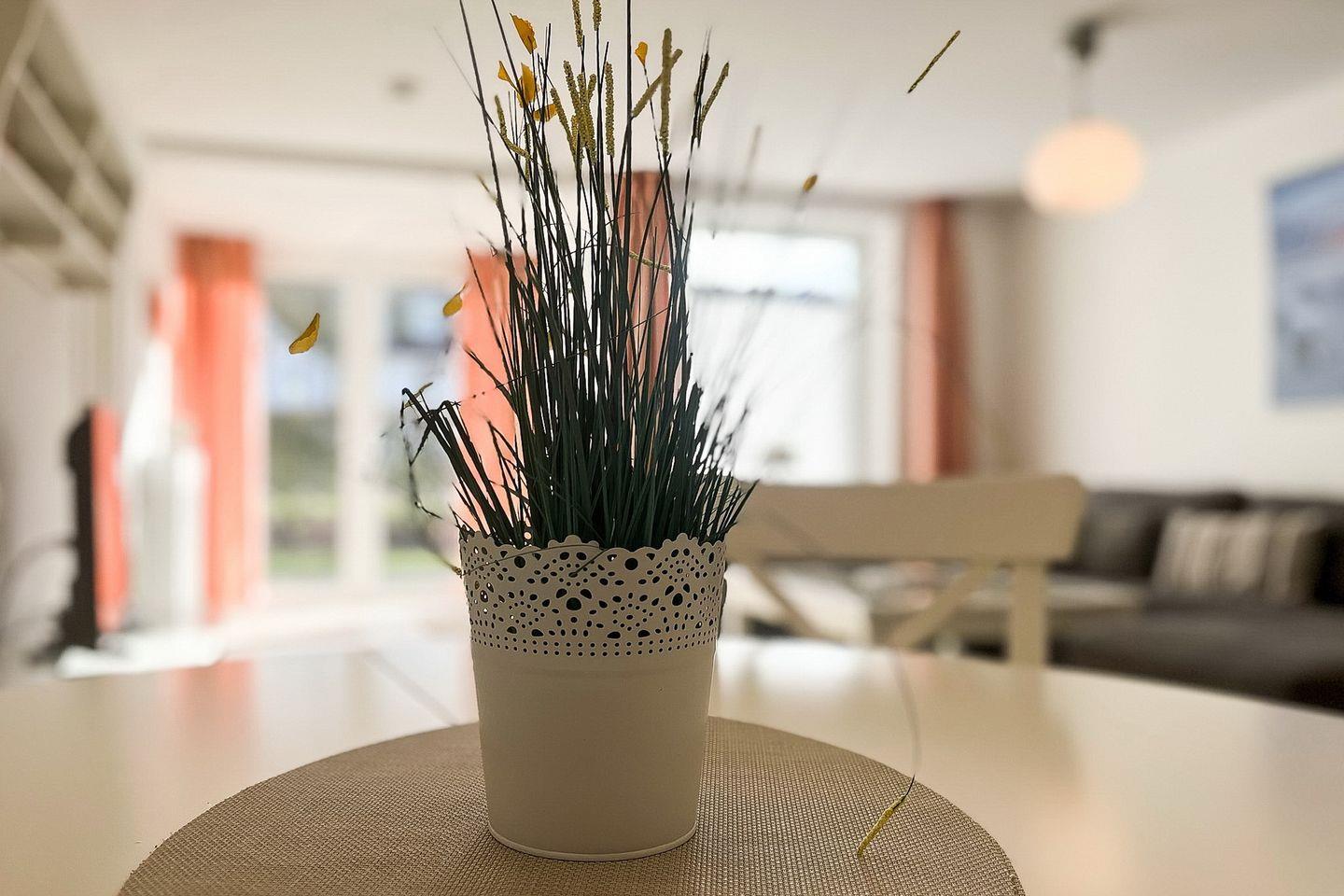 Die 3-Zimmer-EG-Wohnung bietet 63 m² Wohnvergnügen. Die dazugehörige Terrasse lädt zum Sonnenbaden ein. Dazu steht auch ein Strandkorb zur Verfügung. In dem voll ausgestatteten Küchenbereich ist eine Waschmaschine vorhanden. WLAN (ohne Gewähr) inklusive.