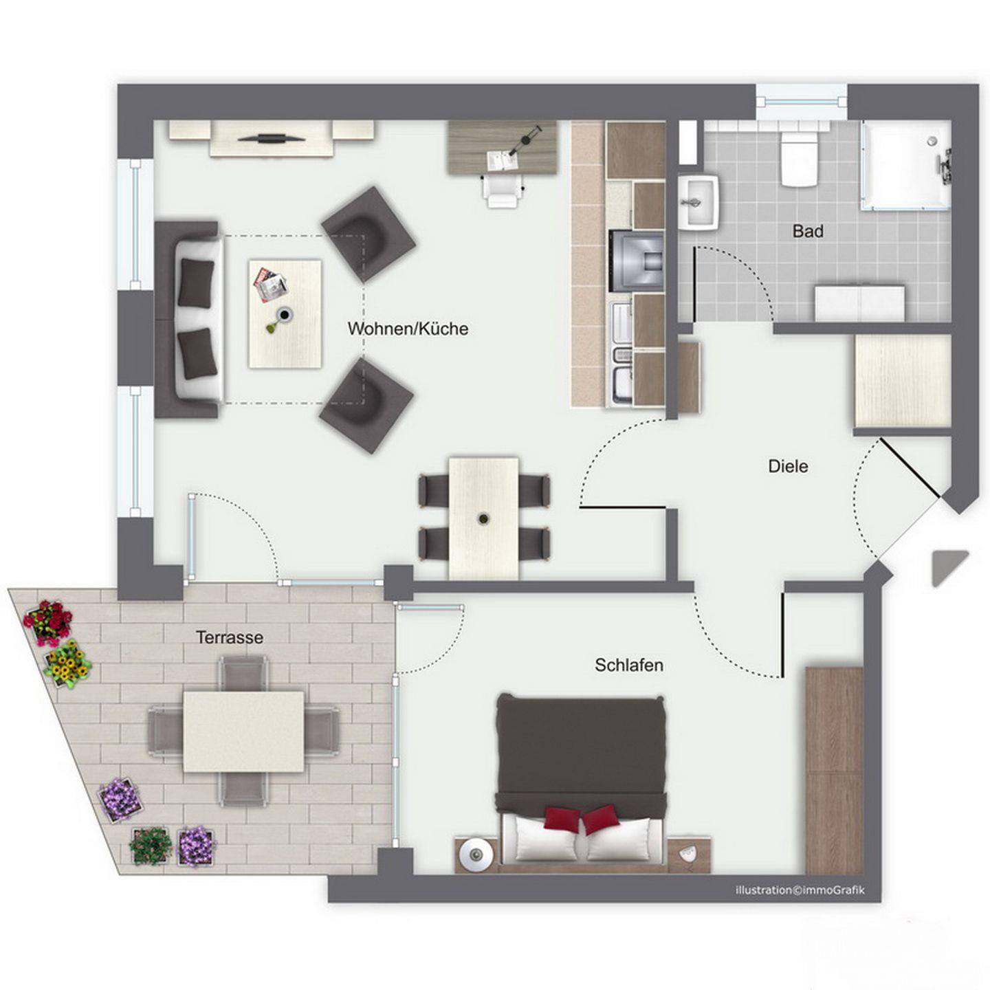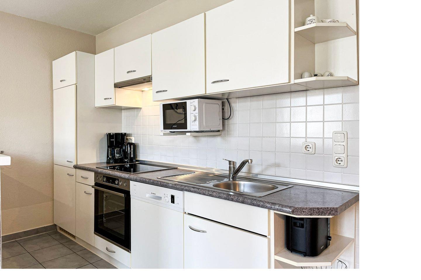 Auf ca. 50 m² verfügst du über ein Wohnzimmer mit Küchenzeile, ein Schlafzimmer, ein Duschbad und die westlich ausgerichtete Terrasse. Der Strand ist nur ca. 70 Meter entfernt.