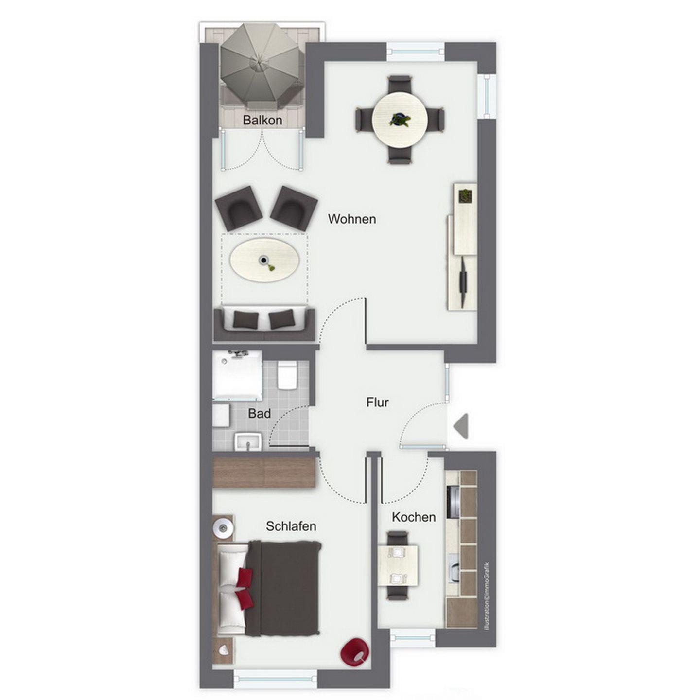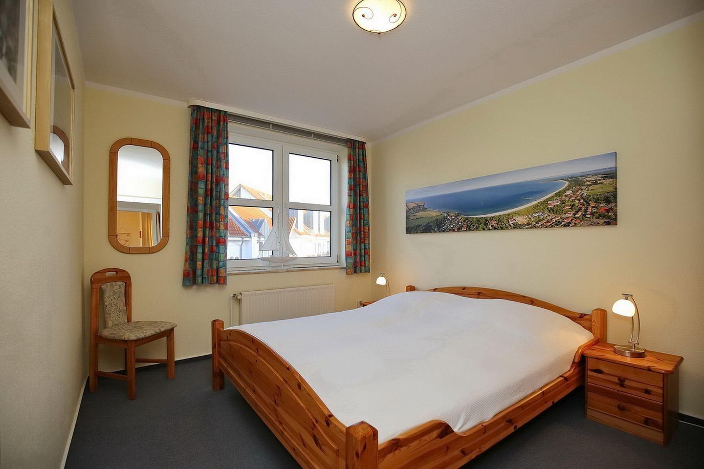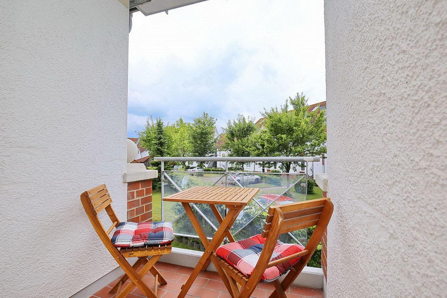 Die Ferienwohnung 84 ist eine 2-Zimmer-Wohnung für bis zu 4 Personen. Sie liegt im 1. Obergeschoss und hat einen Balkon in Süd-Ost-Lage. Eine separate Küche mit Geschirrspüler ist vorhanden. WLAN (ohne Gewähr) steht kostenfrei zur Verfügung.