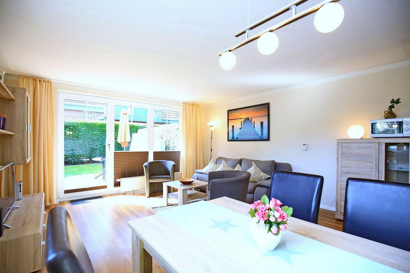 Die Ferienwohnung 09-1 in der Anlage Papillon ist eine schöne 2-Zimmer-Wohnung für bis zu 4 Personen. Die Ferienwohnung liegt im Erdgeschoss und hat eine Terrasse in Süd-West Lage. WLAN (ohne Gewähr) und ein Strandkorb sind in der Wohnung inklusive.