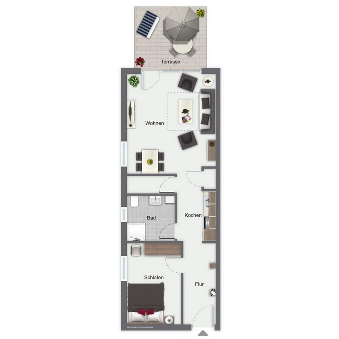 Dein sonniges 2-Zimmer-Apartment mit Terrasse in Süd-West Lage liegt im Erdgeschoss des Hauses 9. Auf 55 qm² bietet die Ferienwohnung ausreichend Platz für bis zu 4 Personen. Du hast einen Wohn-Essbereich, ein Schlafzimmer, eine Küchenzeile und ein Duschbad. Die Strandentfernung beträgt von der Anlage Papillon ca. 250 m.