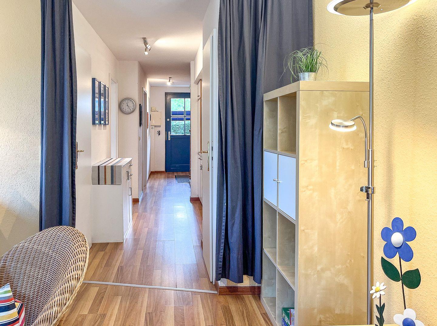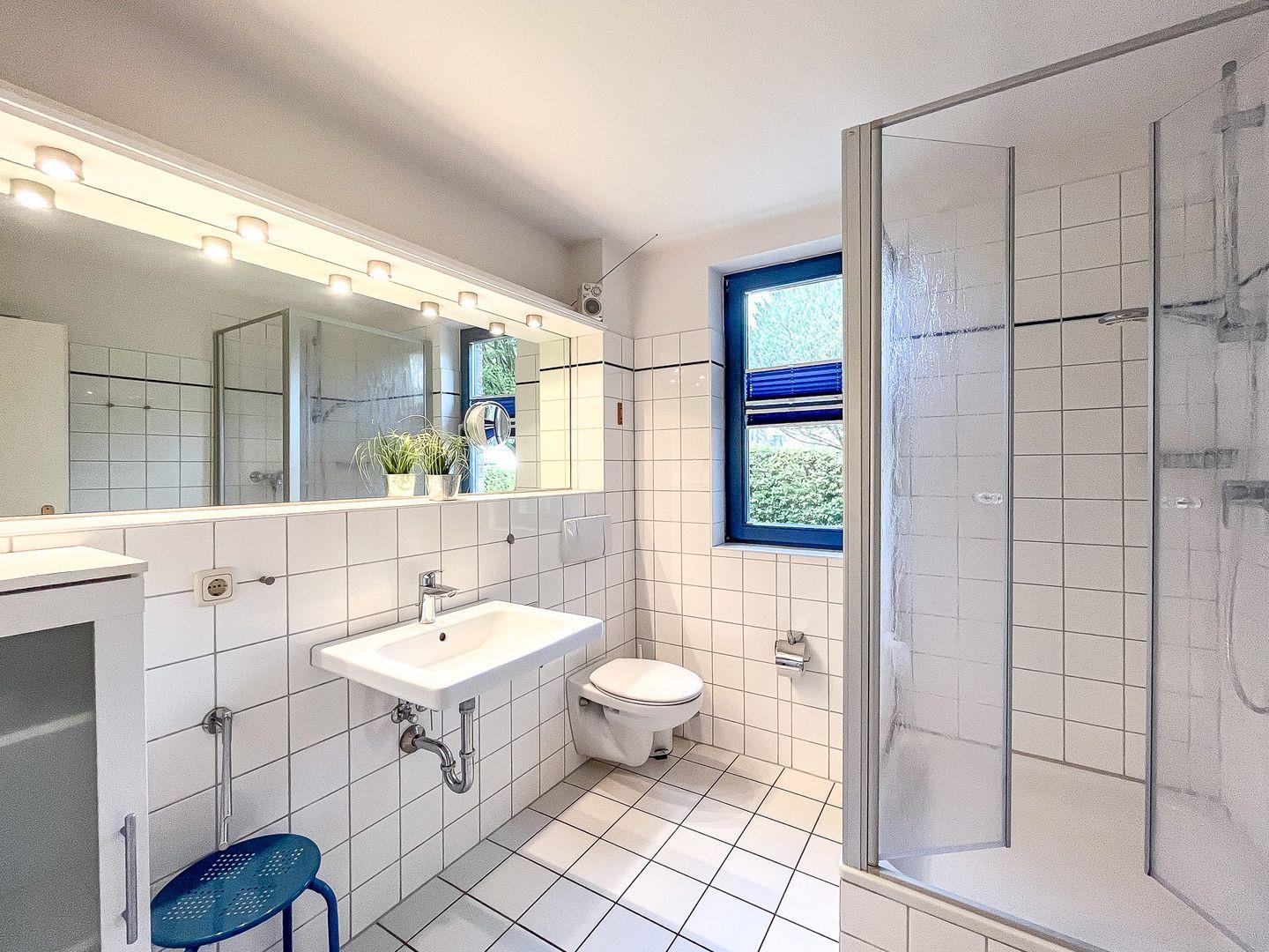 Im hellen und gefliesten Duschbad ist ein Fenster vorhanden. In dieser Ferienwohnung sind ein Kinderhochstuhl und ein Bollerwagen (Zusatzausstattung: ohne Gewähr) inklusive. Mitgebrachte Fahrräder können im Fahrradständer am Haus abgestellt werden. In dieser Nichtraucherwohnung sind maximal zwei Haustiere erlaubt.