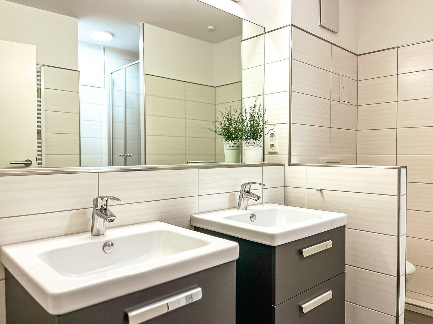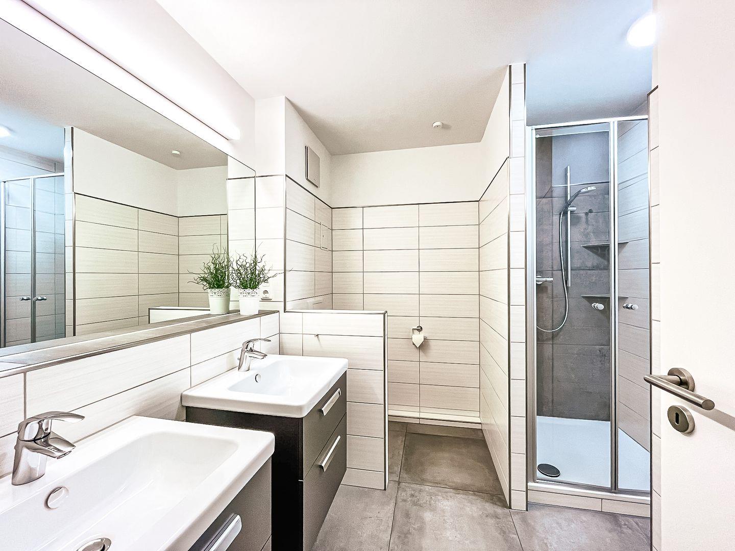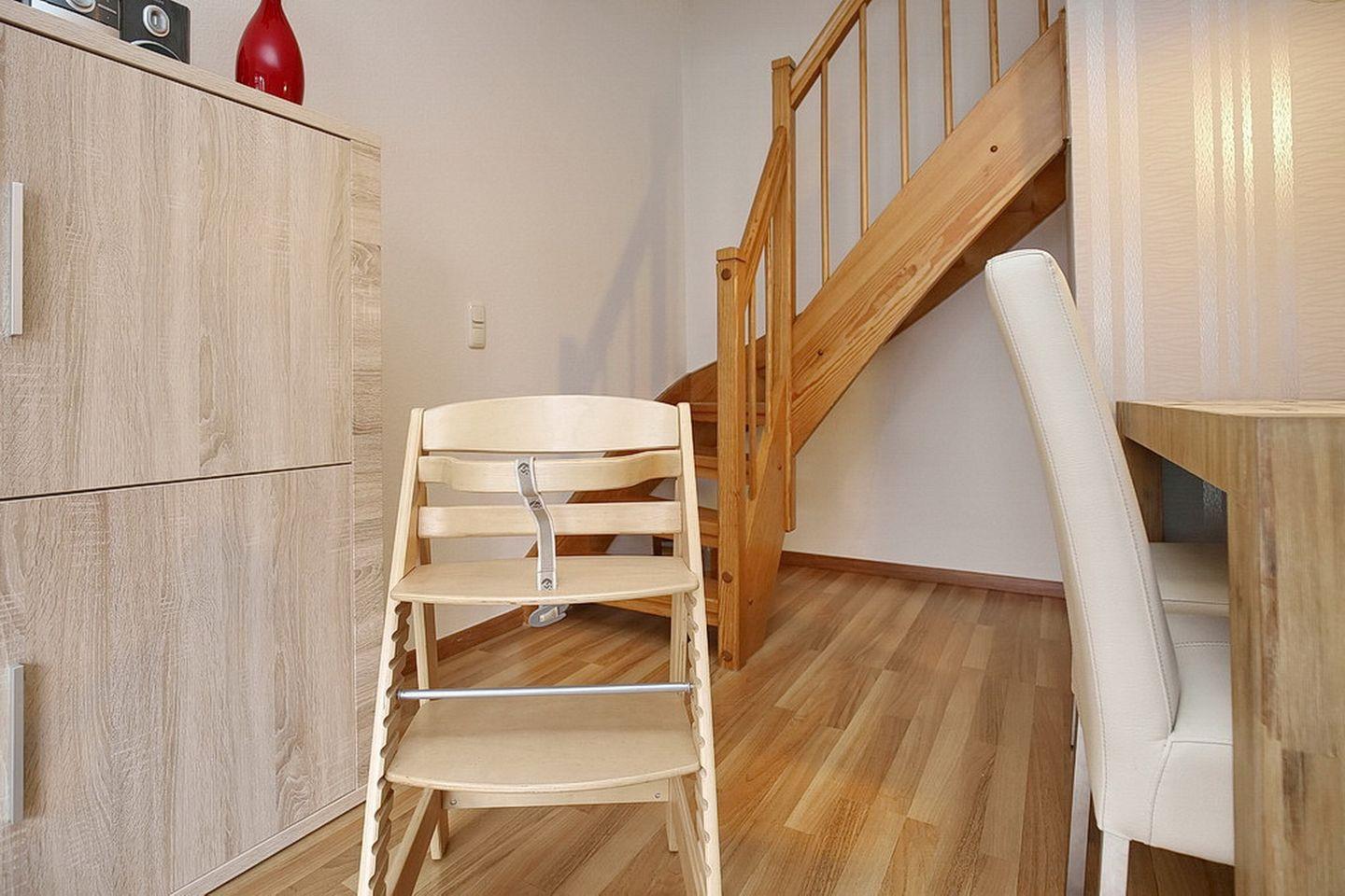 Das frisch renovierte Duschbad im Obergeschoss verfügt über zwei Waschbecken und ein separates WC. Für die kleinen Gäste stehen ein Hochstuhl und ein Kinderbett bereit. In dieser Ferienwohnung ist ein Bollerwagen inklusive (ohne Gewähr). Fahrräder können im Fahrradständer am Haus abgestellt werden. In dieser Nichtraucherwohnung sind Haustiere nicht erlaubt.