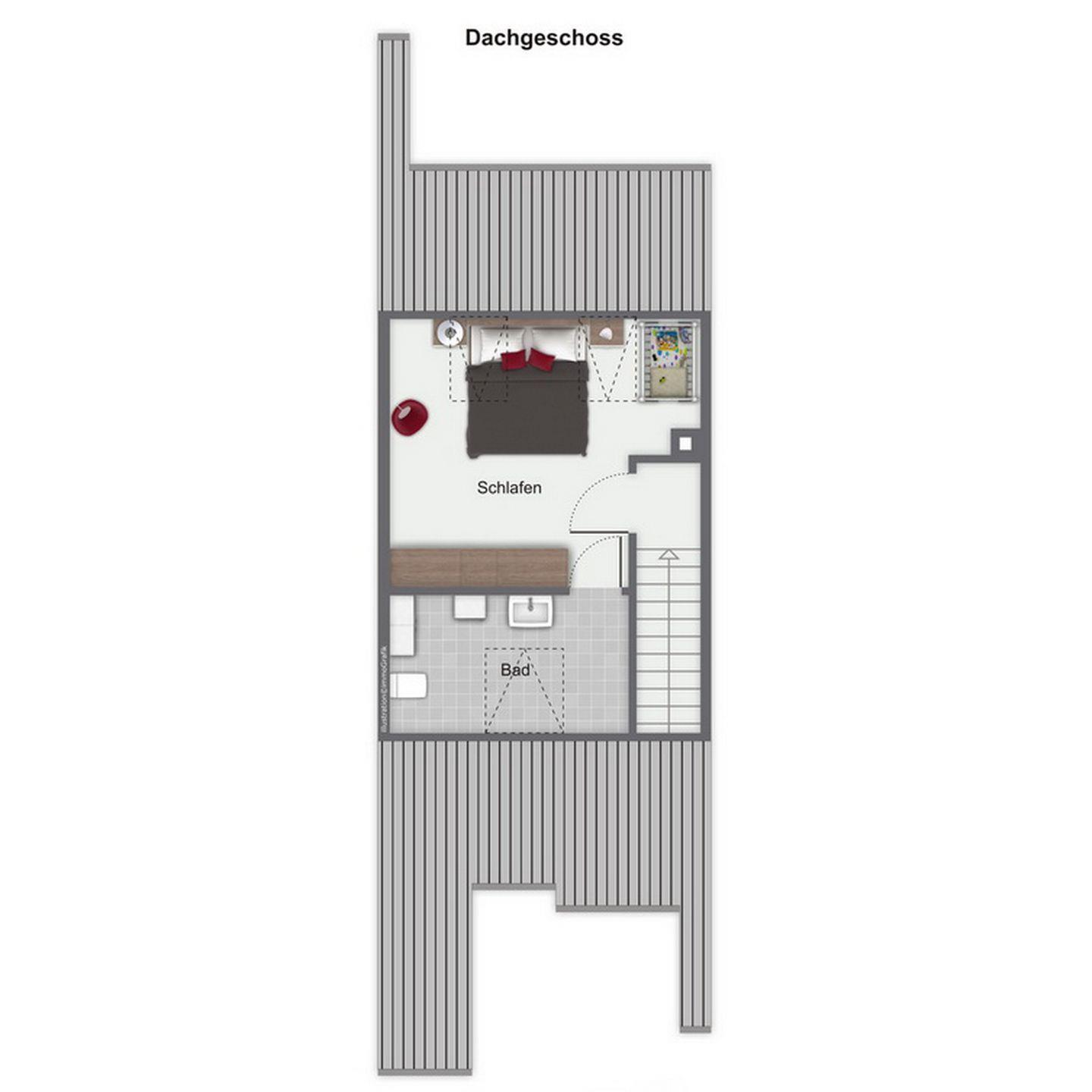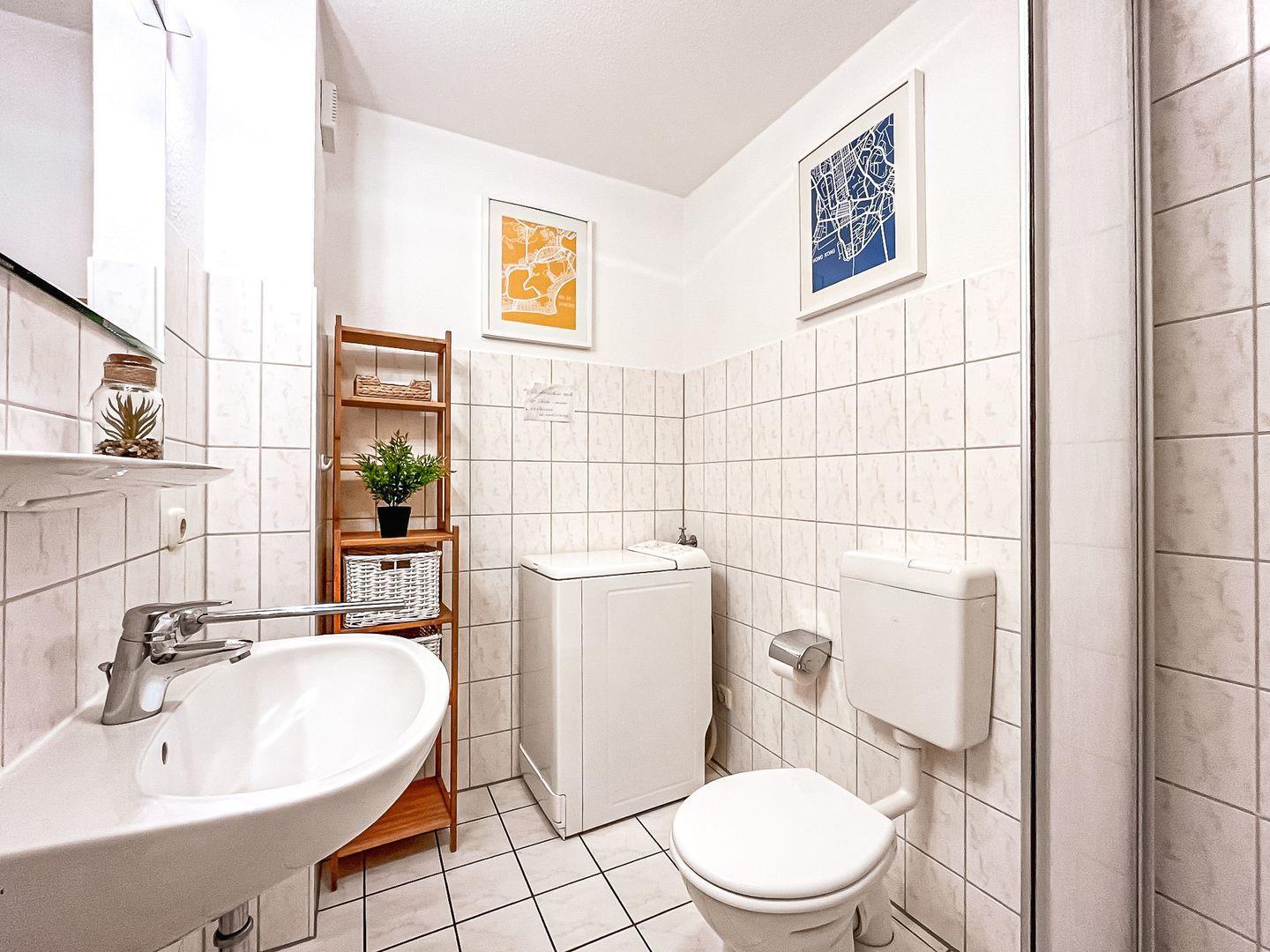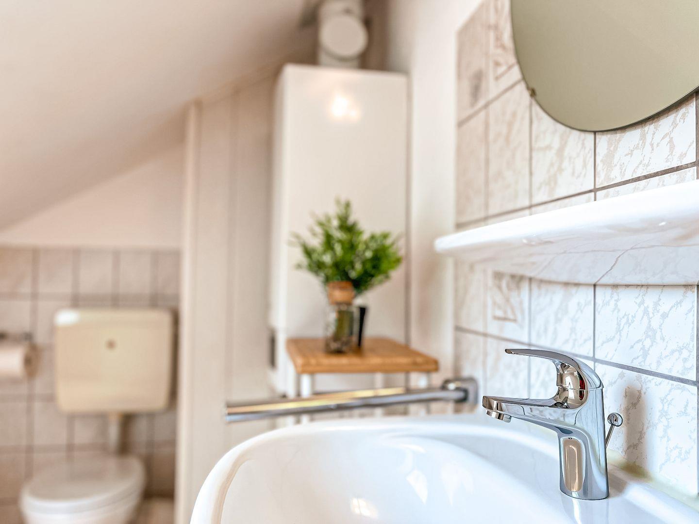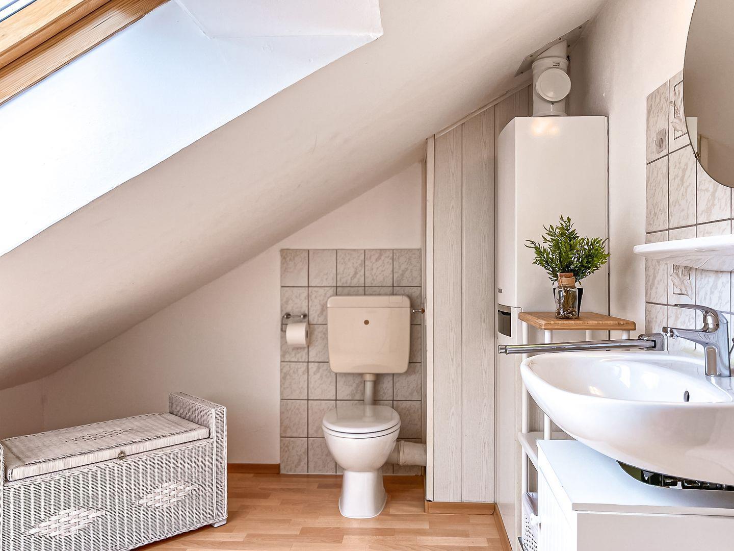 In dem Duschbad im Erdgeschoss steht dir auch eine Waschmaschine zur Verfügung, so dass einem längeren Aufenthalt nichts im Wege stehen dürfte. Im Obergeschoss des Ferienhauses befindet sich ein Gäste-WC.