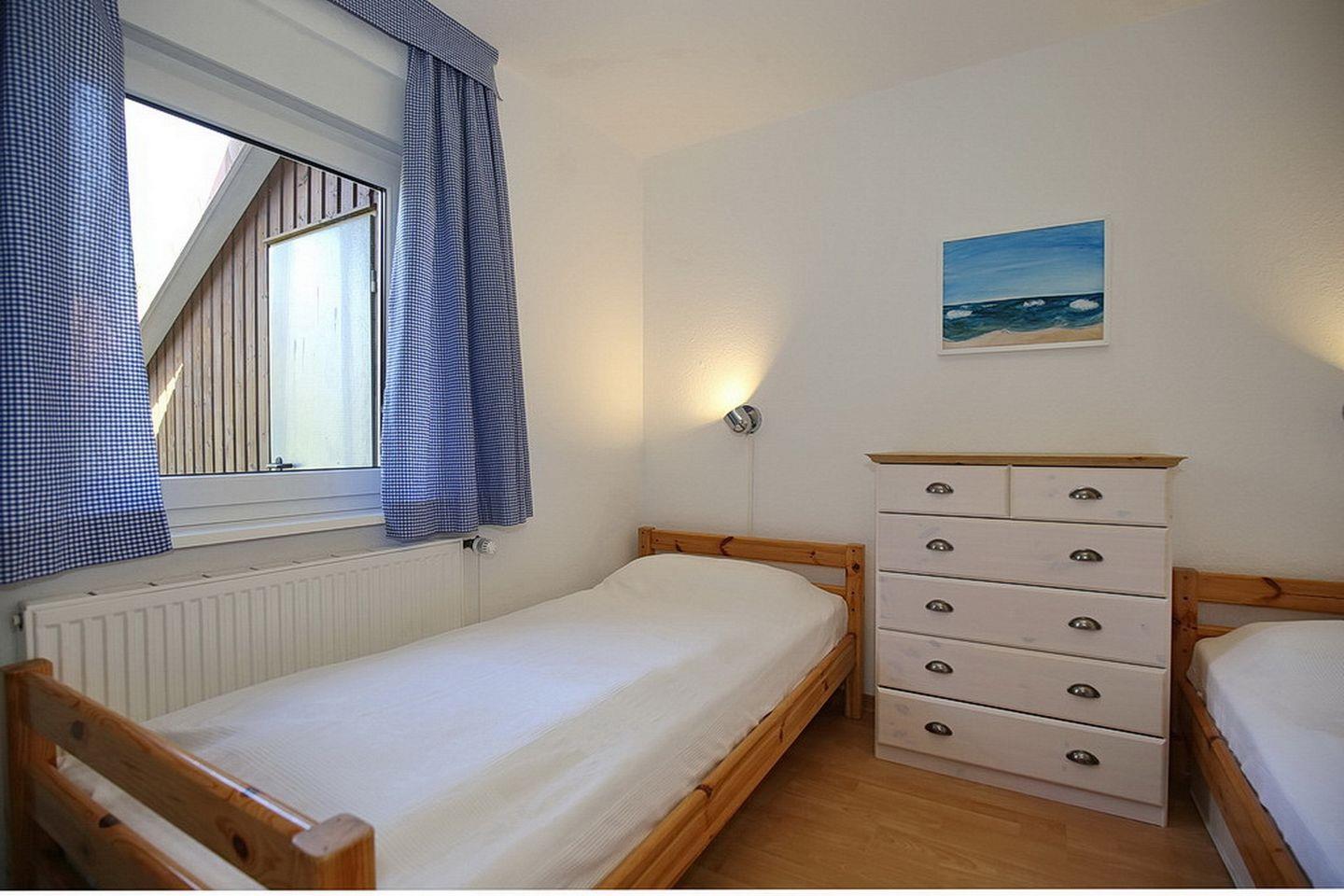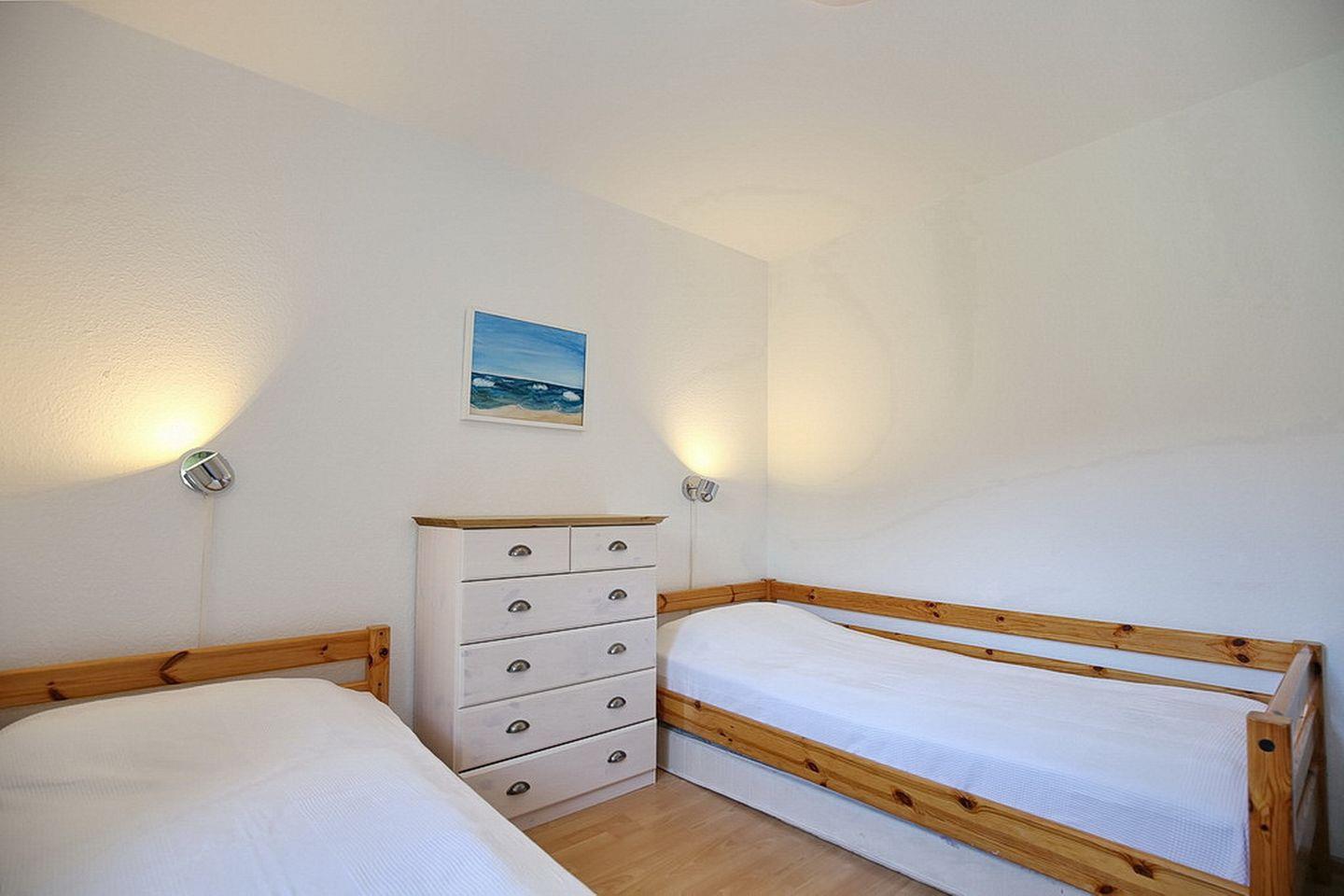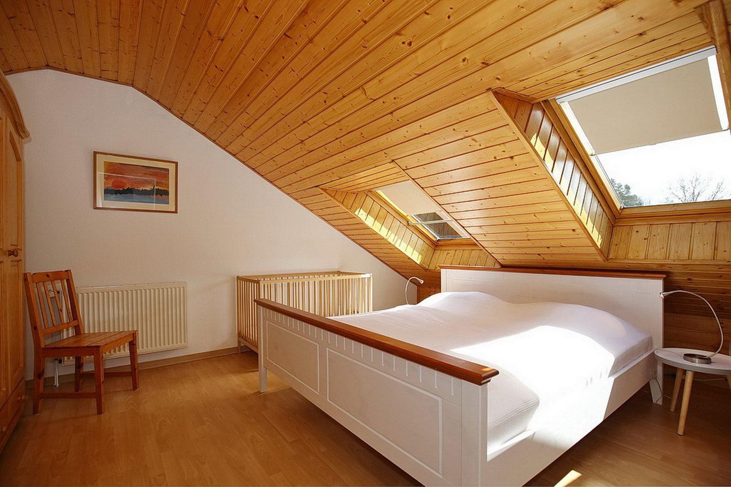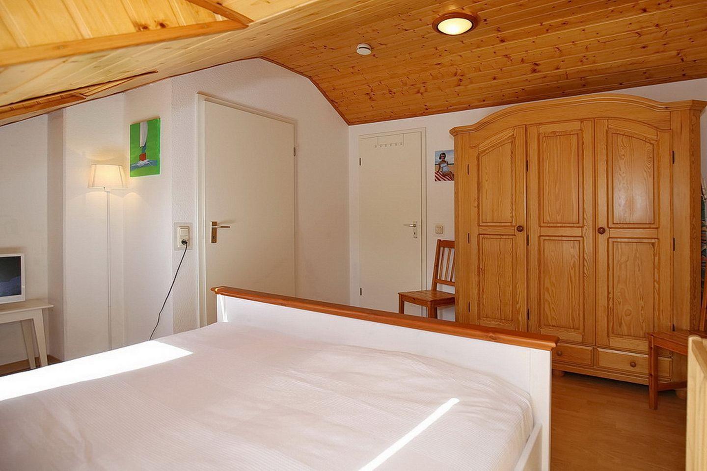 Als Schlafmöglichkeiten erwarten dich ein Doppelbett (2 x 90 x 200 cm) in dem Schlafzimmer im Obergeschoss und zwei Einzelbetten (je 90 x 200 cm) im Schlafzimmer im Erdgeschoss. Ein stabiles Kinderbett und ein Hochstuhl für die kleinen Urlauber sind ebenfalls vorhanden.