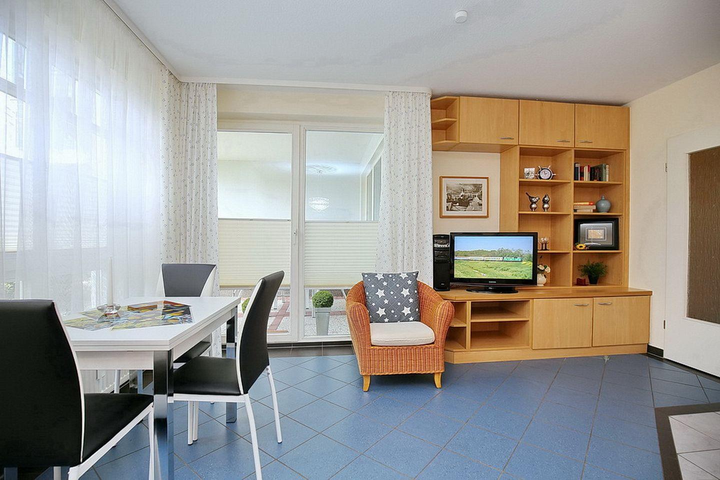 Die Ferienwohnung 4 in der Anlage Likedeeler ist eine schöne 2-Zimmer-Wohnung für bis zu 3 Personen. Die Ferienwohnung liegt im Erdgeschoss und hat eine Terrasse in West Lage.