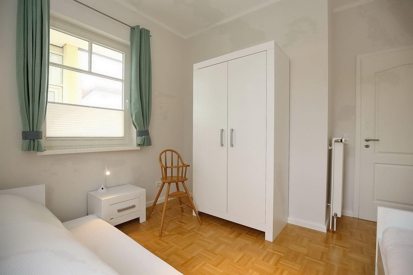 In einem der beiden Schlafzimmer stehen zwei Einzelbetten (je 90 x 200 cm) und in dem anderen Schlafzimmer ein Doppelbett (2 x 90 x 200 cm). Ein Kinderhochstuhl und Kinderbett können von unseren kleinen Gästen kostenfrei genutzt werden.
