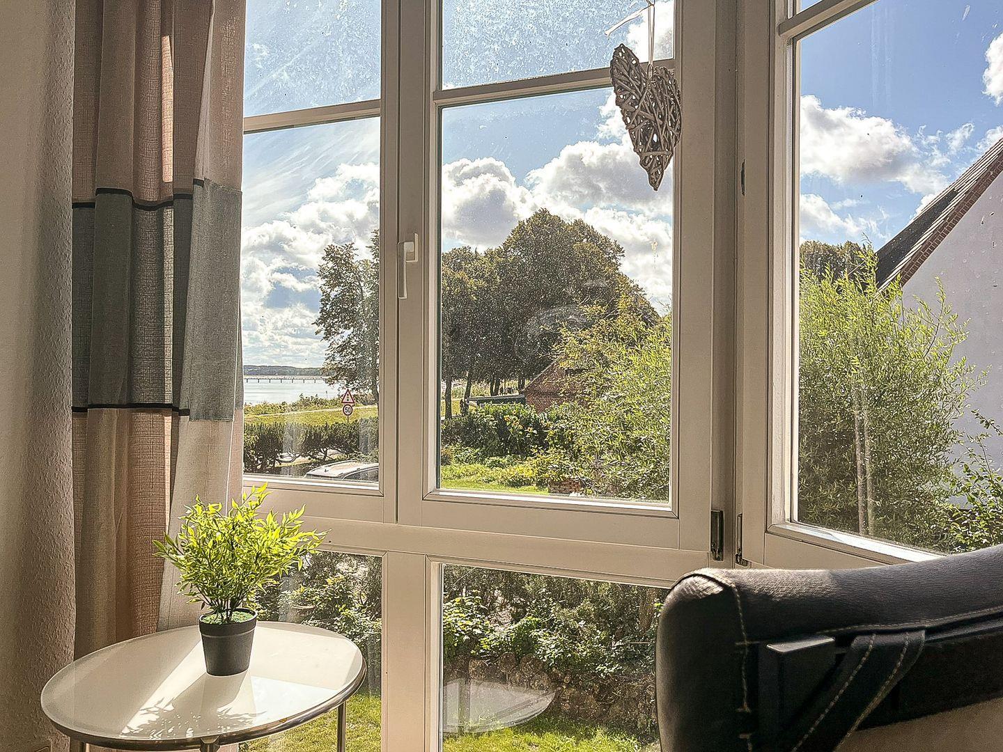 Das Wohnzimmer ist lichtdurchflutet und mit einer bequemen Eck-Couch, Flachbild-TV (SAT-Anlage) und einer Stereoanlage mit CD-Player ausgestattet. Vom Wohnzimmer aus gelangst du auf den möblierten Balkon. Von hier aus kannst du den seitlichen Teilseeblick genießen.