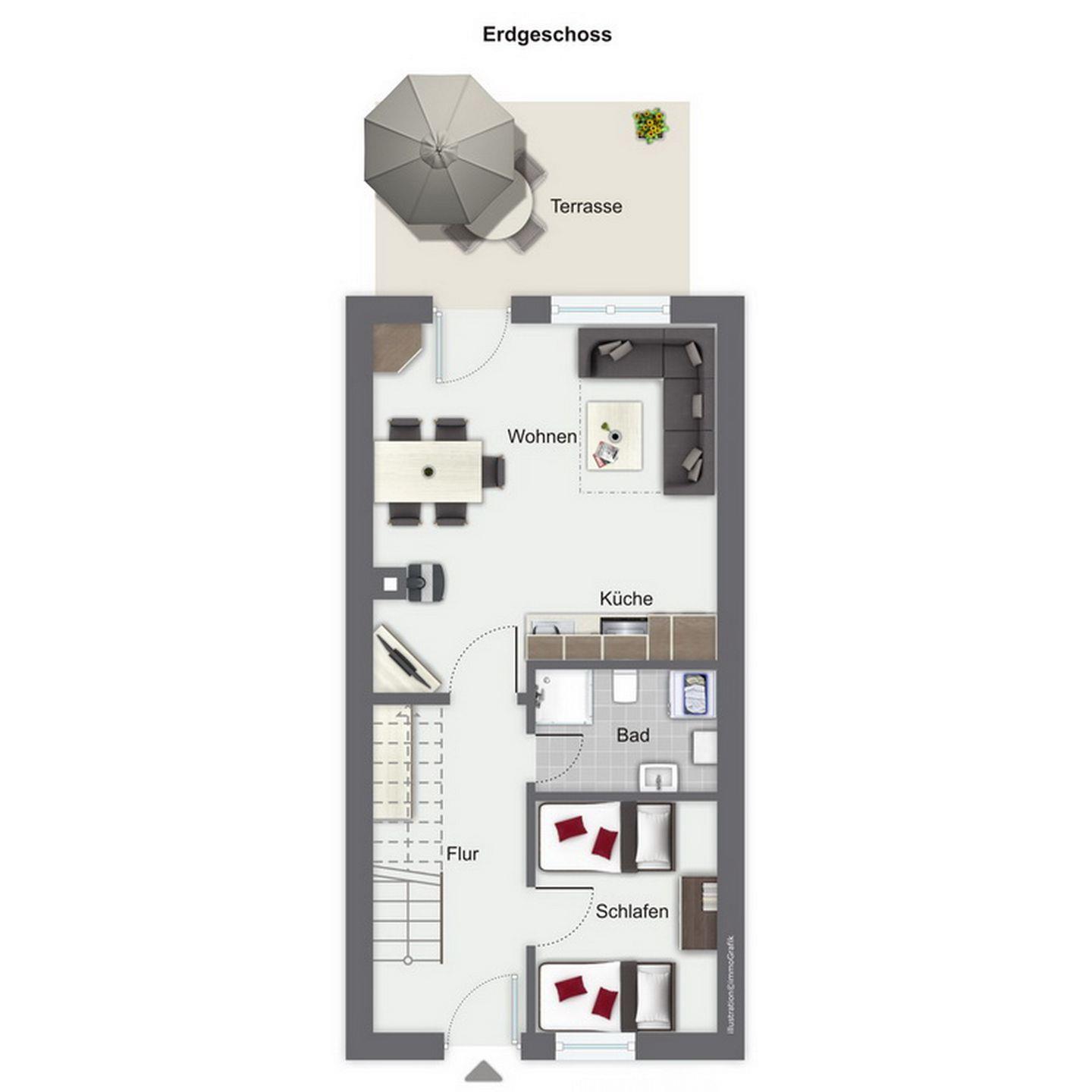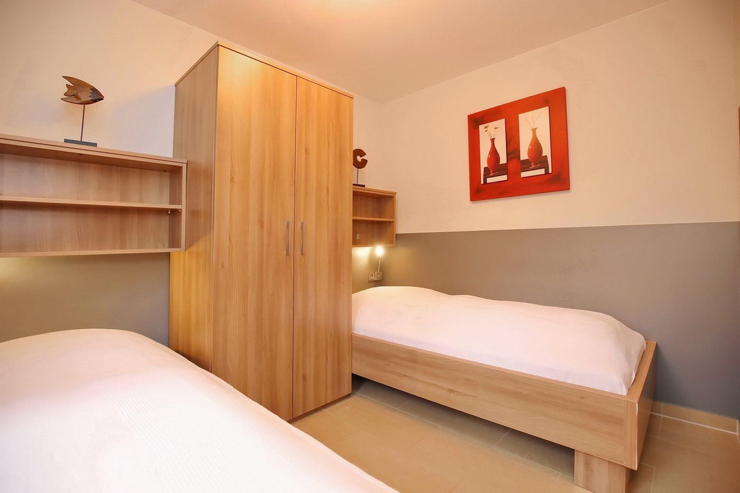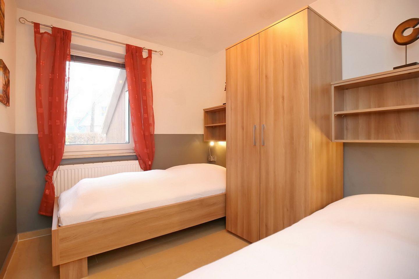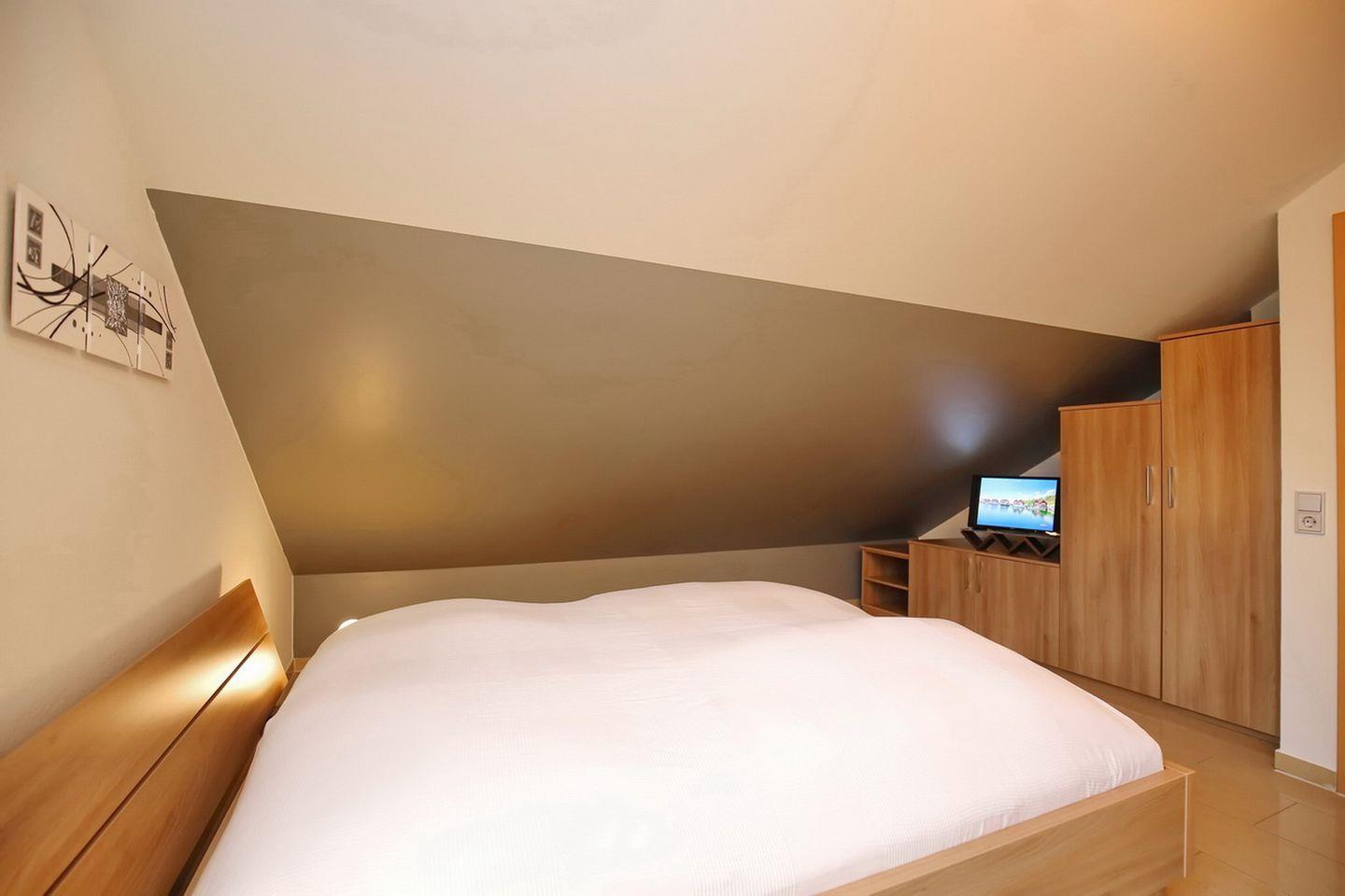 Als Schlafgelegenheiten stehen dir in dem Schlafzimmer im Obergeschoss ein Doppelbett (2x 80x200) und in einem weiteren Schlafzimmer im Erdgeschoss zwei Einzelbetten zur Verfügung. Alle Betten verfügen über verstellbare Lattenroste. Ein 2. Fernseher kann im Schlafzimmer im Obergeschoss genutzt werden.