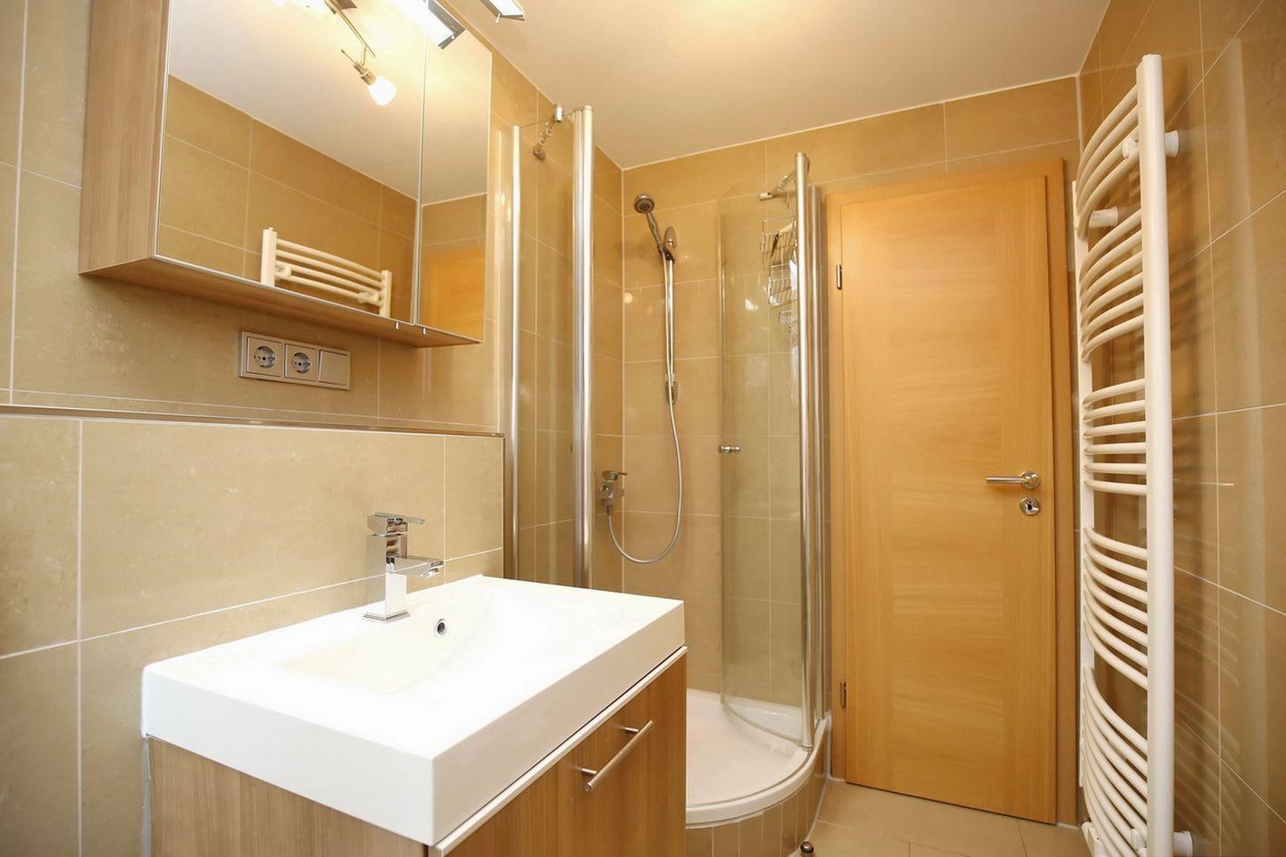 Zwei moderne Duschbäder können in diesem Ferienhaus genutzt werden. Eine Waschmaschine ist vorhanden.