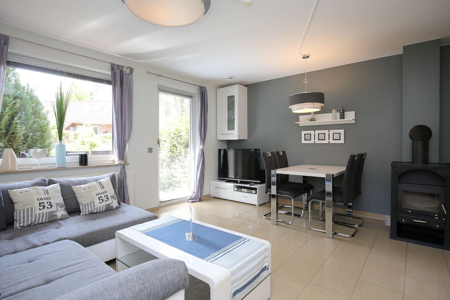 Der Stil des Ferienhauses Nr. 63 a verbreitet durch seine moderne Farbgebung eine stilvolle Atmosphäre. Die sonnige, möblierte Südterrasse ist von deinem Wohnzimmer aus betretbar. Hier findest du den idealen Aufenthaltsort zum Entspannen. Für deine Unterhaltung am Abend sorgen der Flachbildfernseher sowie eine Stereoanlage mit DVD-Funktion. An kalten Winterabenden lädt der Kamin zur gemütlichen Runde bei einem guten Glas Wein ein. Dimmbare Beleuchtungen sorgen für romantische Stimmung.