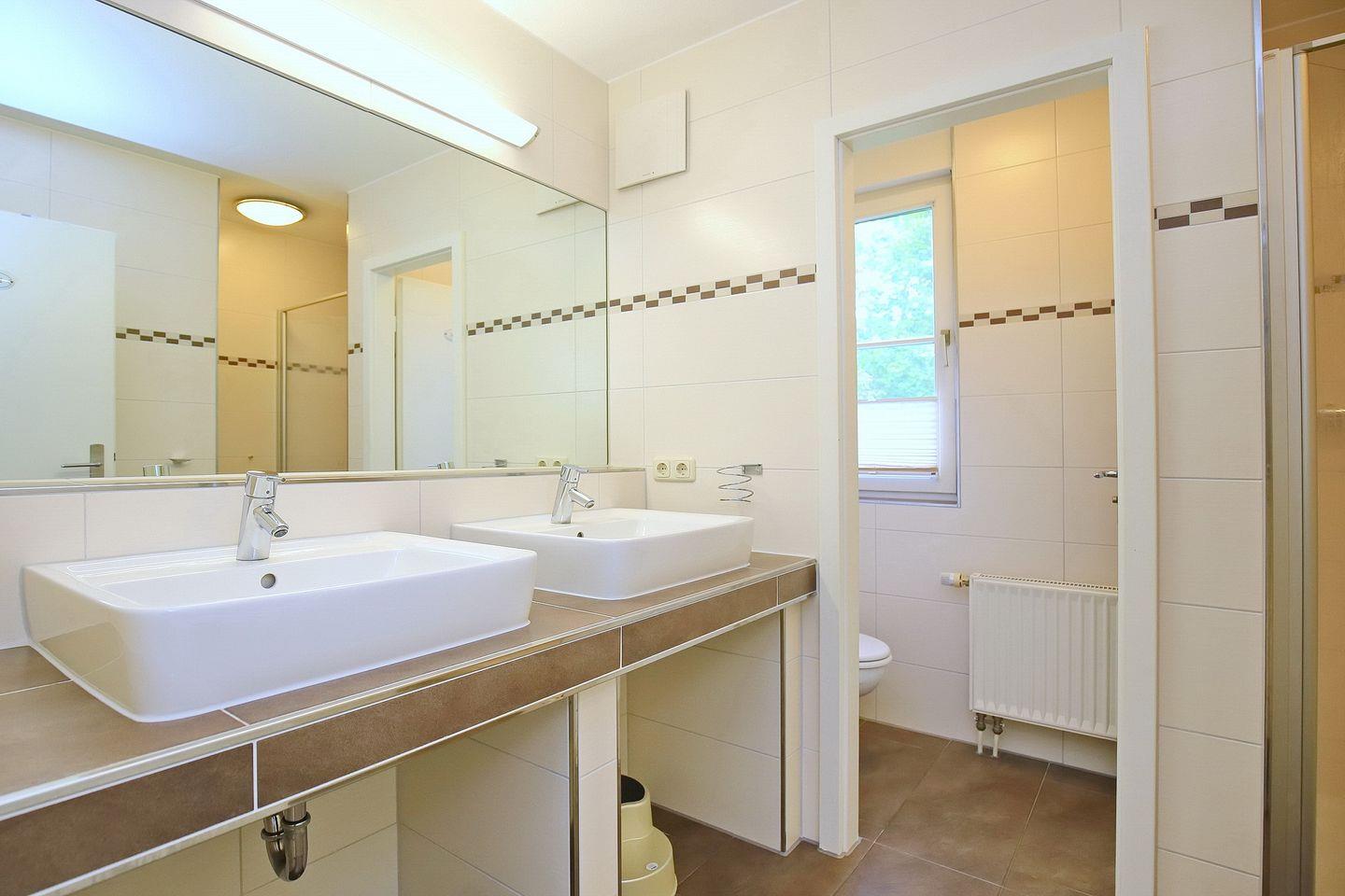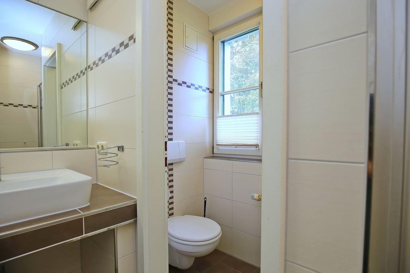 Das Bad ist mit zwei modernen Waschtischen, einer Duschkabine sowie einem separaten WC mit Fenster ausgestattet. Zusätzlich steht dir in dieser Wohnung ein Gäste-WC zur Verfügung. Fahrräder können im Fahrradständer am Haus abgestellt werden. In dieser Nichtraucherwohnung sind Haustiere nicht erlaubt.