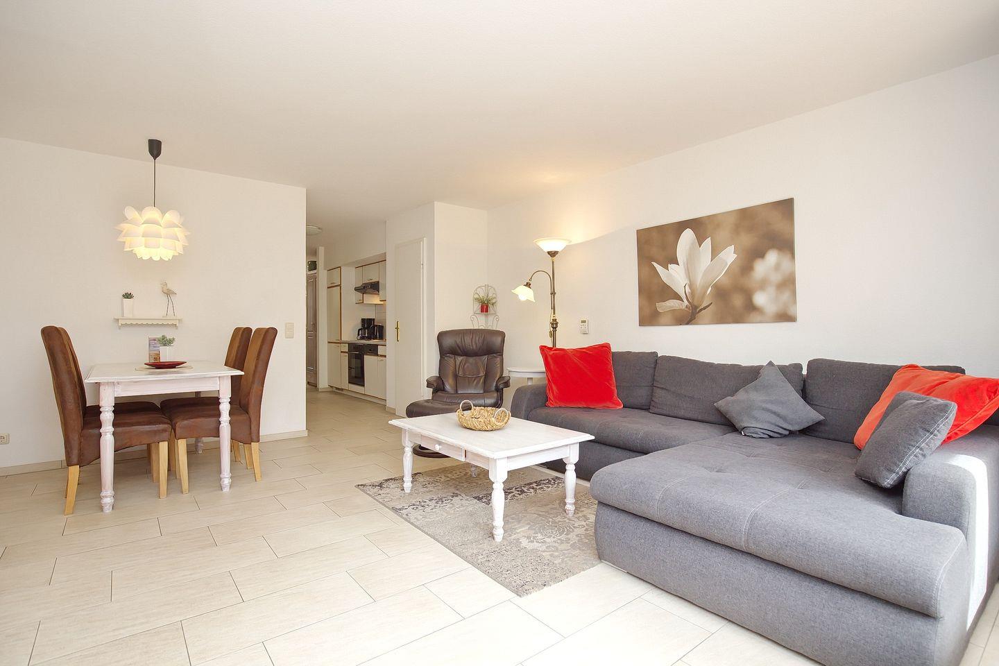 Die Ferienwohnung 05-2 in der Anlage Papillon ist eine schöne 2-Zimmer-Wohnung für bis zu 4 Personen. Die Ferienwohnung liegt im Erdgeschoss und hat eine Terrasse in Süd-West Lage.