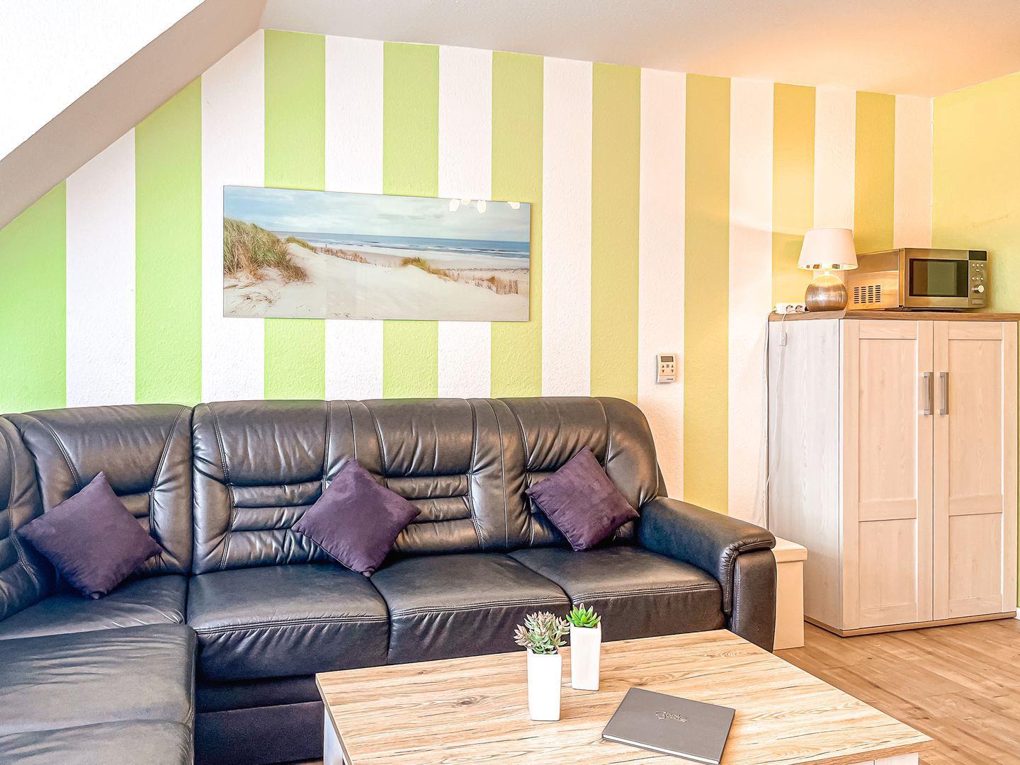 Auf zwei Etagen findest du hier eine moderne 4-Zimmer-Ferienwohnung im 1. OG mit Balkon in Süd-West-Lage vor. Die Wohnung mit einem eigenen Zugang über die Außentreppe bietet mit ca. 70 m² bis zu sechs Personen eine geräumige Unterkunft. Die Wohnung teilt sich auf in einen Wohn-/Essbereich, drei Schlafräume und ein Duschbad mit separatem WC. Die Entfernung zum Strand beträgt nur 250 m.