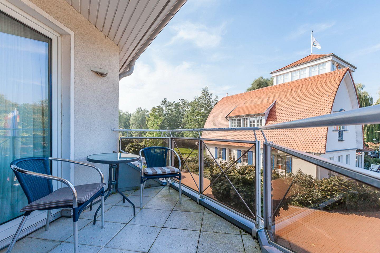 Hier ist der Name Programm. Auf dem Balkon steht ein Strandkorb, von dem du direkten Blick auf das Kurhaus sowie den Kurpark hast. Die Flaniermeile des Ortszentrums liegt dir hier zu Füßen. Bei dieser abwechslungsreichen Aussicht kannst du so manchen Kaffee genießen. Das Wohnzimmer teilt sich in Wohn- und Essbereich auf. Eine Couch, zwei Sessel und ein Flachbildfernseher gehören genauso zur Ausstattung wie der Esstisch mit 4 Stühlen und ein Sideboard. Eine Belegung der Ferienwohnung mit 4 Personen wird durch die ausziehbare Doppelschlafcouch (150 x 190 cm) ermöglicht.