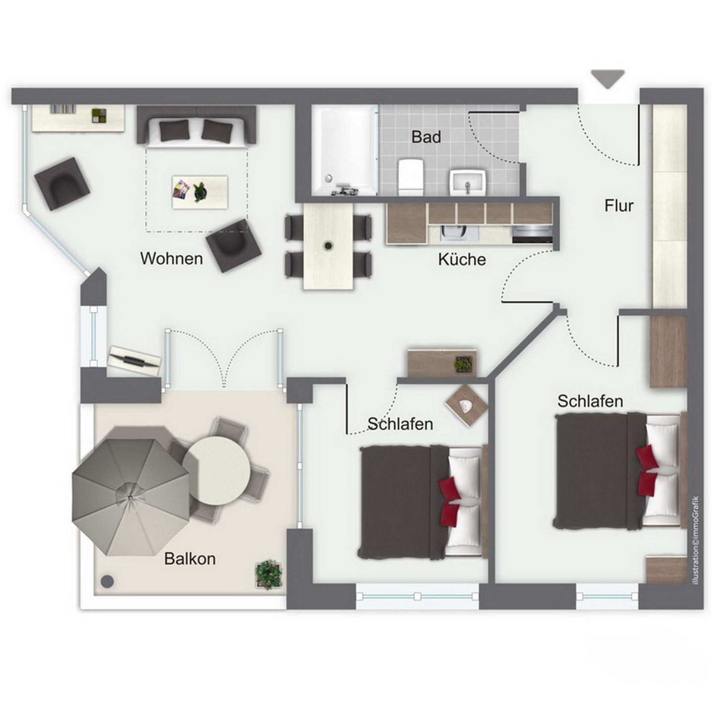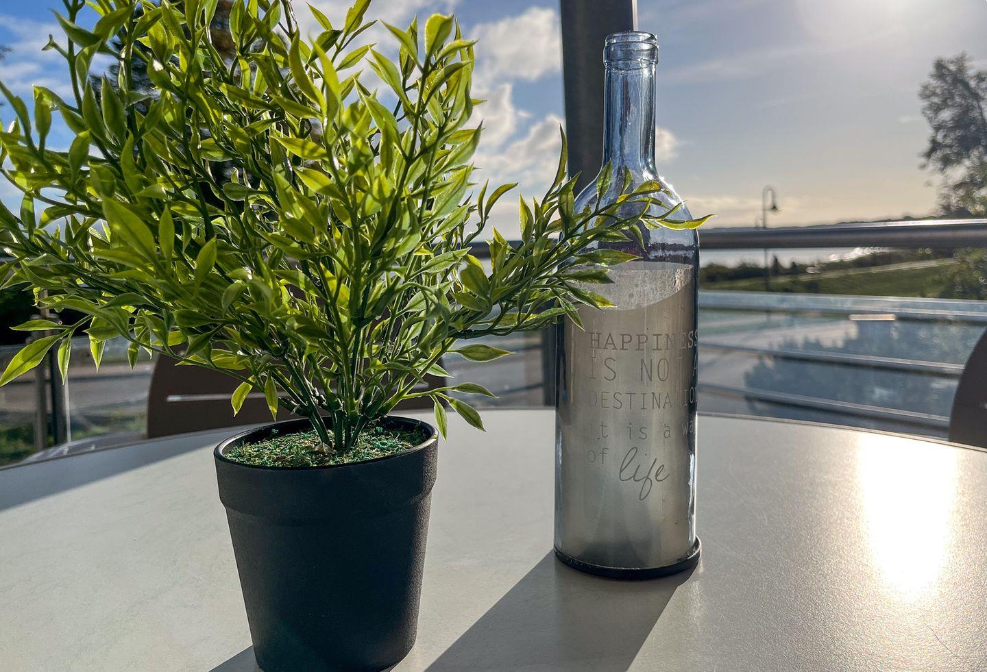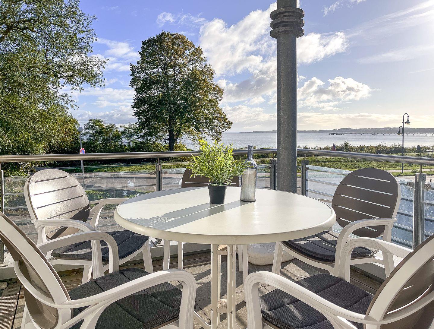Deinen wohlverdienten Urlaub kannst du auf dem möblierten Balkon genießen. Der Zugang ist vom Wohn- und Schlafzimmer möglich. Im Wohnzimmer befinden sich ein Schlafsofa und ein Esstisch. Für Unterhaltung sorgen ein Flachbild-TV, ein DVD-Player und eine Stereoanlage.