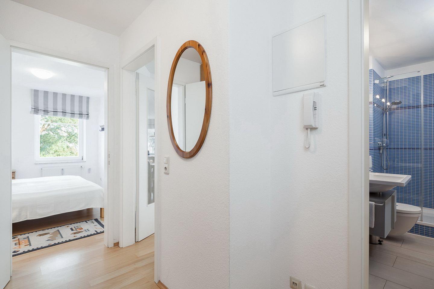 Auf 54 m² lädt diese Ferienwohnung im 1. OG des Hauses 1 zum Verweilen ein. Zur 3-Zimmer-Wohnung gehören ein Wohnzimmer, zwei Schlafzimmer, eine Küchenzeile und ein Duschbad. Vom Balkon aus hast du direkten Seeblick und Panoramablick über die Boltenhagener Bucht. Die Entfernung zum Strand beträgt von der Ferienanlage Dünenblick ca. 50 m.
