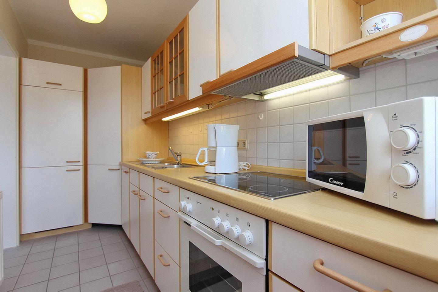 Die moderne Küche verfügt über einen Herd mit einem 4-Platten-Cerankochfeld, Backofen, Mikrowelle, einen Geschirrspüler und vieles mehr. Die gemütliche Essecke bietet viel Platz und Komfort für kulinarische Genüsse.