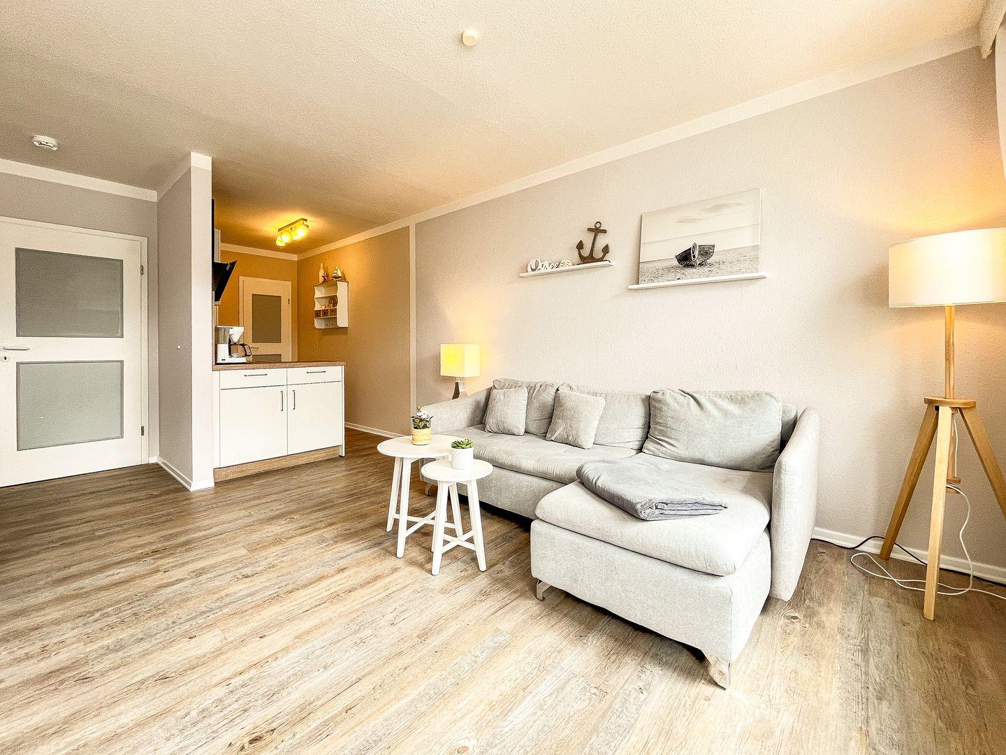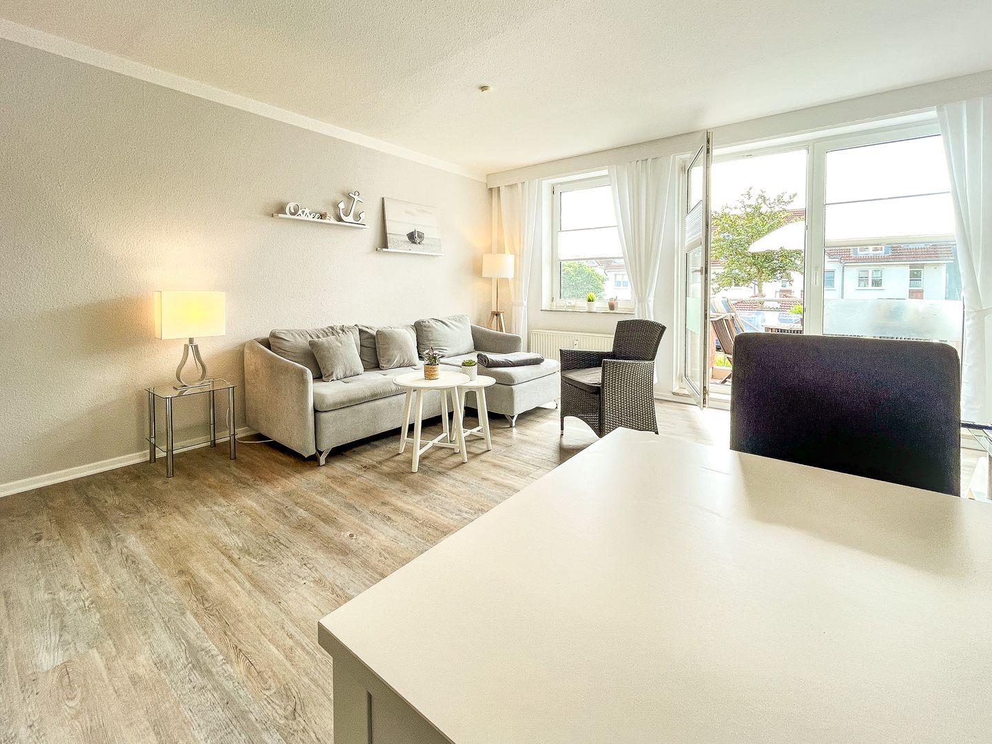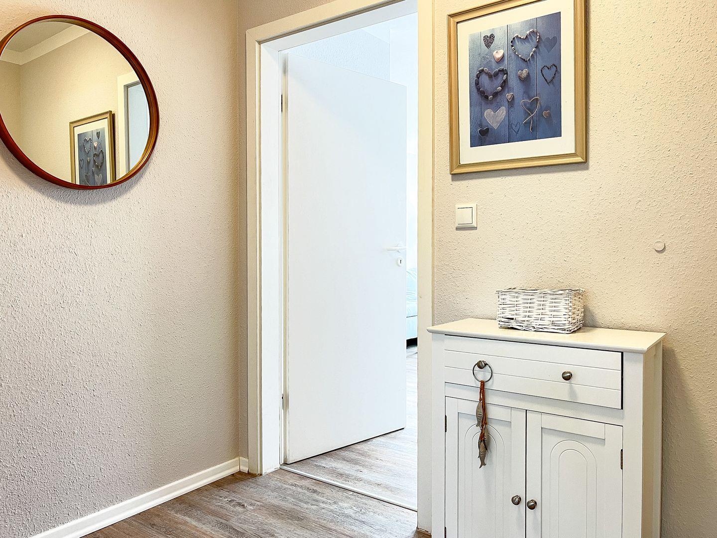 Im ersten Obergeschoss des Hauses liegt die 3-Zi.-Wohnung mit einer Wohnfläche von 59 m². Dieses Quartier ermöglicht dir und bis zu 3 weiteren Personen einen erholsamen und komfortablen Urlaub. Du bewohnst zwei Schlafzimmer, Wohn- und Essbereich, Küchenzeile und Duschbad. Die Strandentfernung beträgt von der Anlage Sünnslag ca. 400 m.