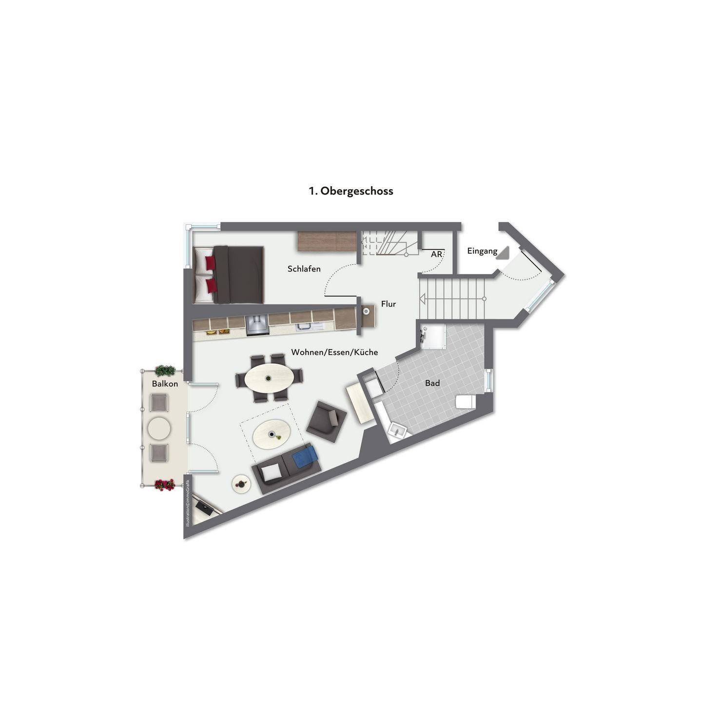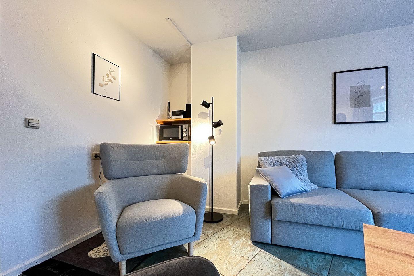 Du bewohnst im Obergeschoss ein komfortables 3-Zimmer-Apartment mit Balkon in Südlage. Es erwartet dich ein Wohn-/ Essbereich, ein Schlafraum, eine Küche sowie ein Duschbad. Die Strandentfernung beträgt von der Anlage Sünnslag ca. 400 m.