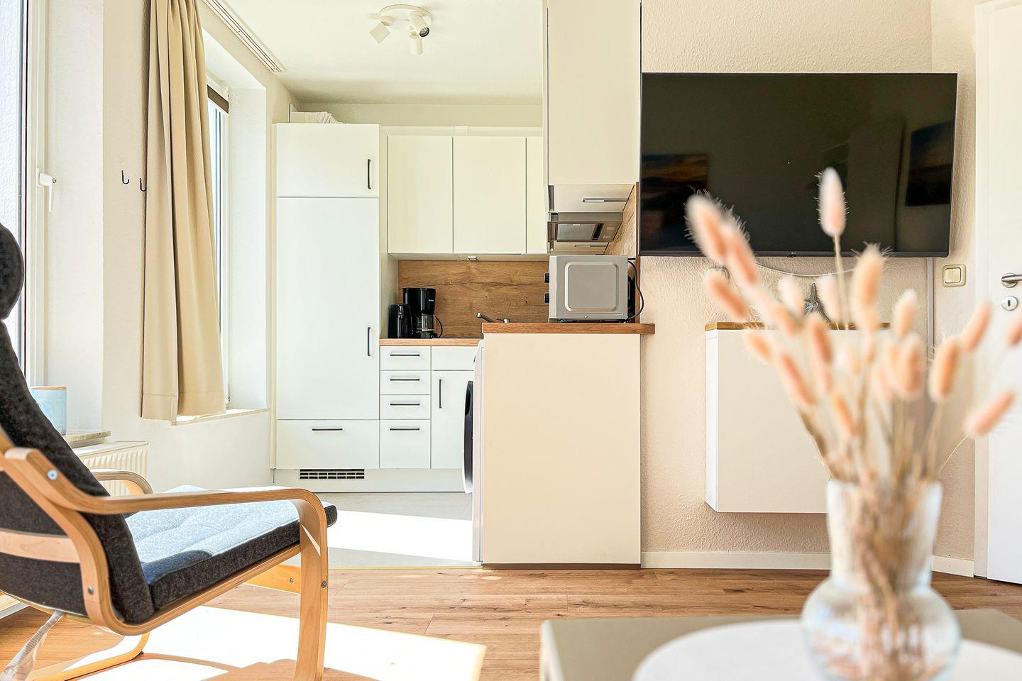 Die im Frühjahr 2025 renovierte Ferienwohnung Nr. 26 EG in der Ferienanlage Sünnslag ist eine 2-Zimmer-Wohnung für bis 4 Personen.