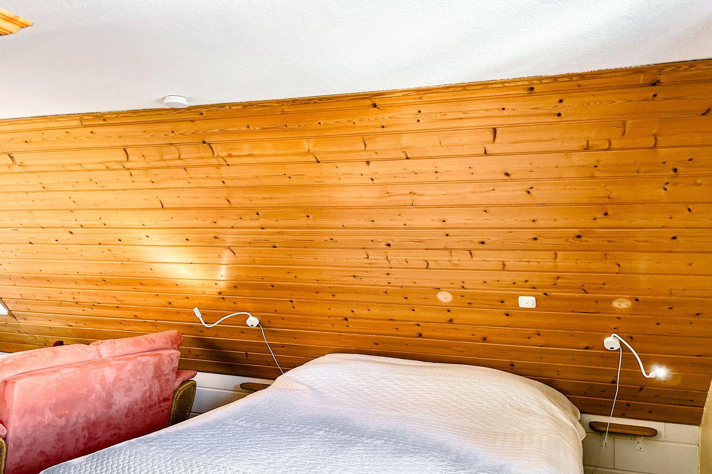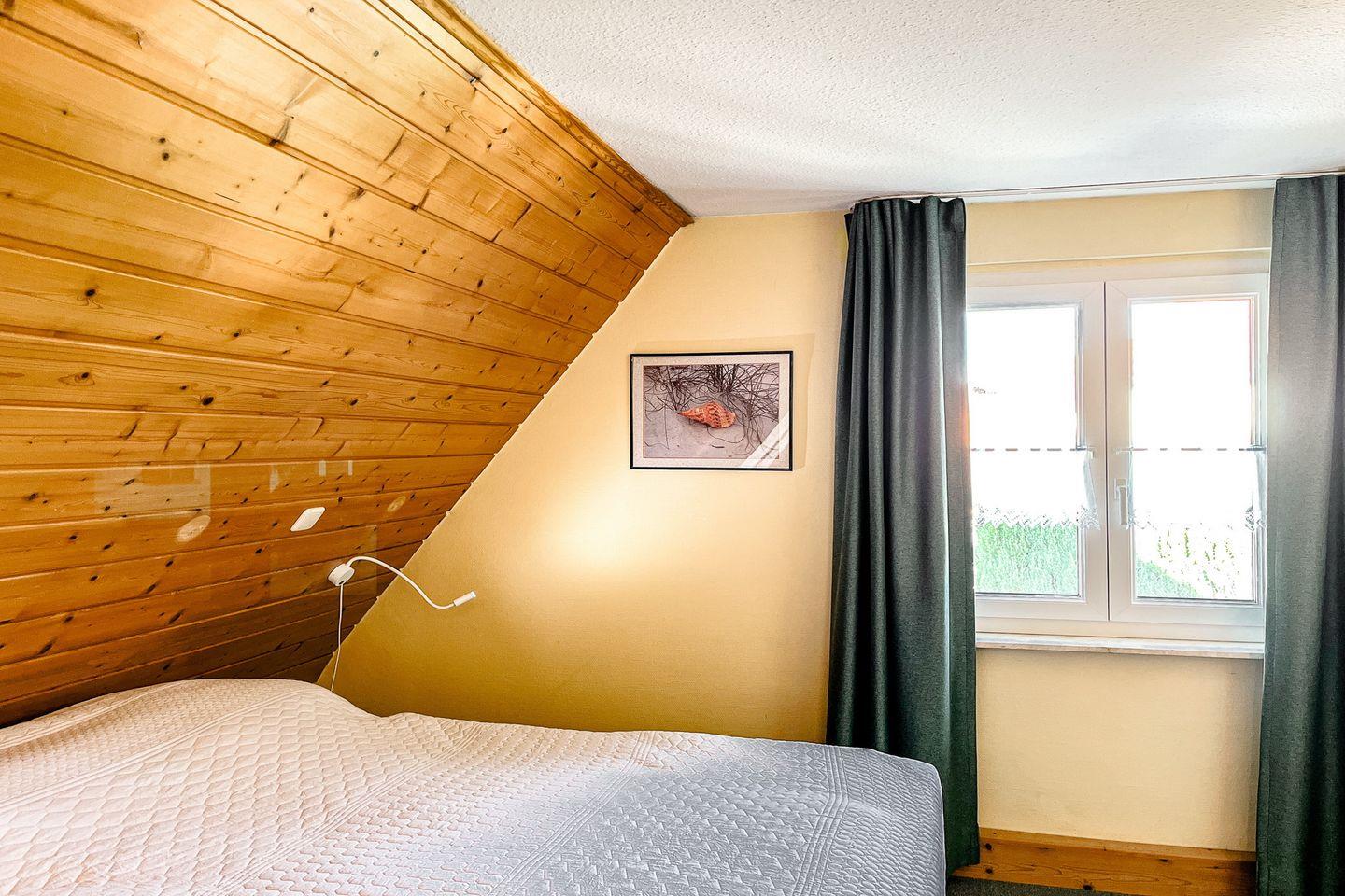 Ein großes Doppelbett (180 x 200 cm) sorgt für erholsame Nächte. Ein Kleiderschrank bietet ausreichend Platz für deine Urlaubsgarderobe. Das Fenster lässt sich verdunkeln, um ungestörten Schlaf zu gewährleisten. Weiterhin befindet sich am Dachfenster ein Sonnenrollo (außen).