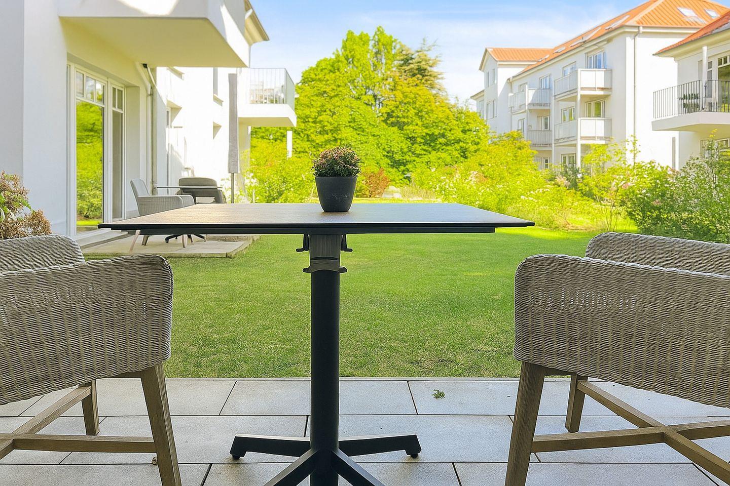 Ein Highlight ist die Terrasse mit Gartenmöbeln – hier kannst Du Deinen Morgenkaffee im Freien genießen oder entspannt den Tag ausklingen lassen.