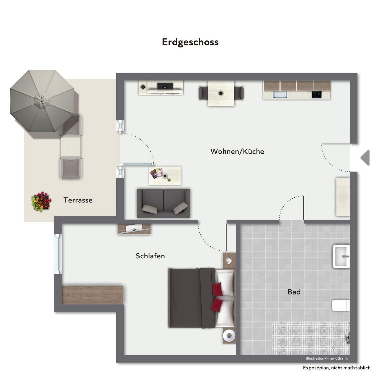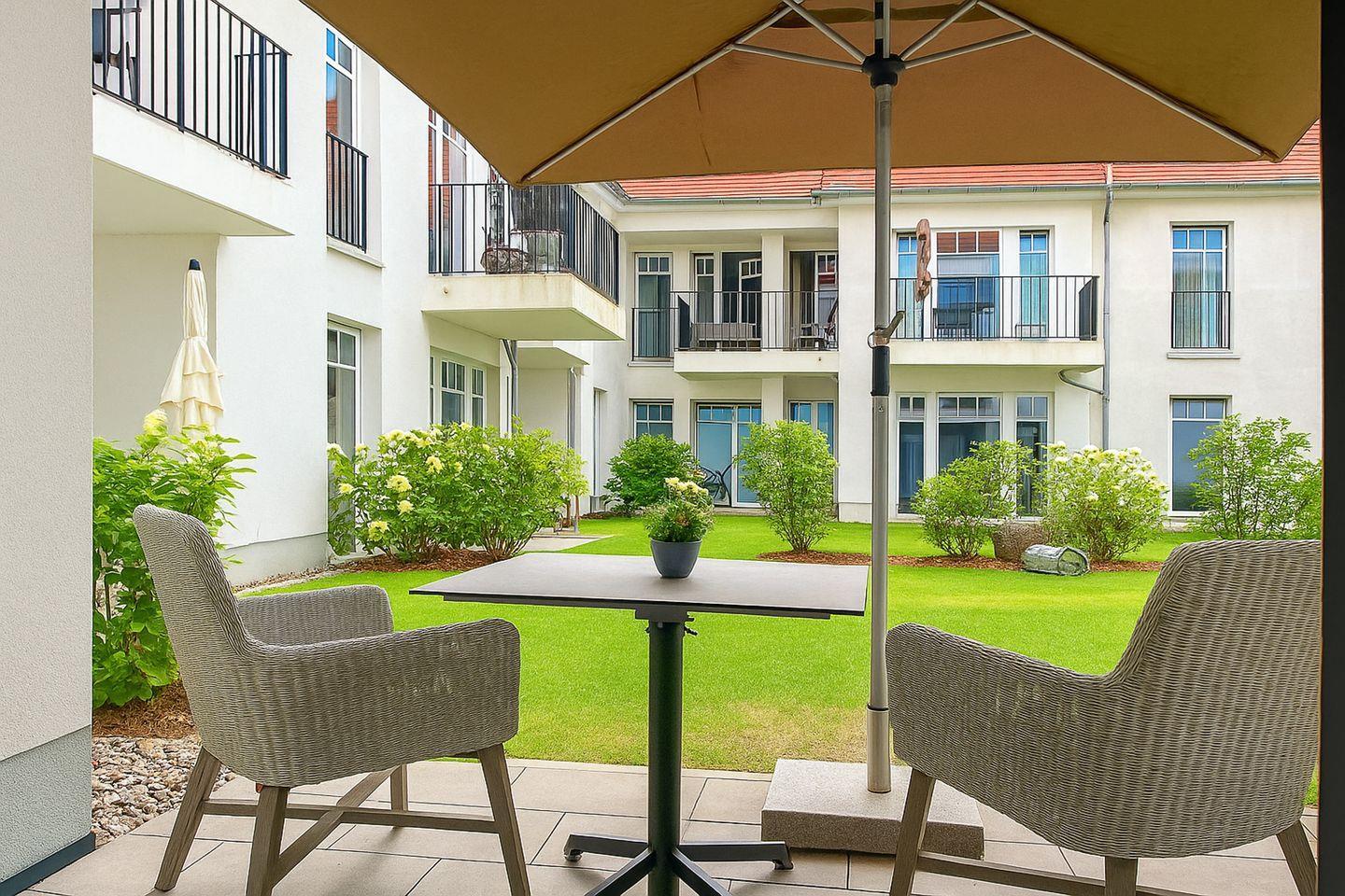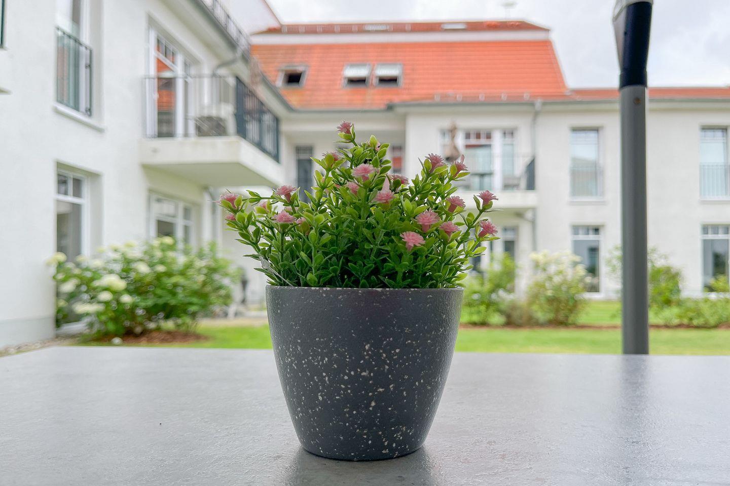 Ein echtes Plus ist die möblierte Terrasse mit Sonnenschirm – hier kannst Du wunderbar draußen frühstücken oder die frische Ostseeluft genießen.