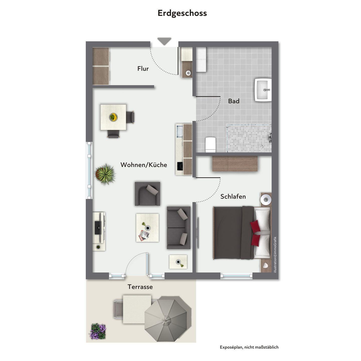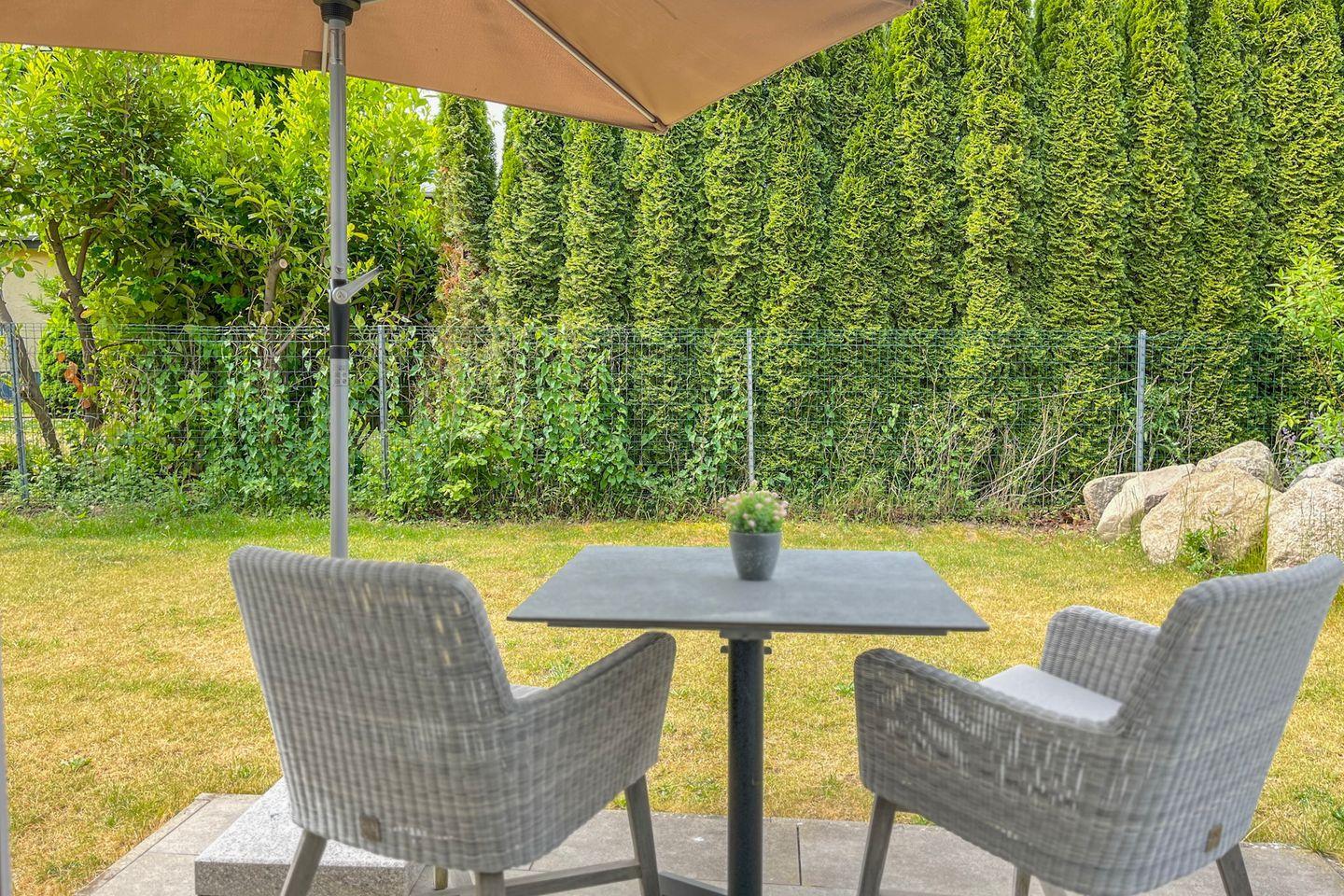 Ein besonderes Extra ist die möblierte Terrasse mit Gartenblick und Sonnenschirm – ein idealer Ort, um die Ostseeluft in vollen Zügen zu genießen.